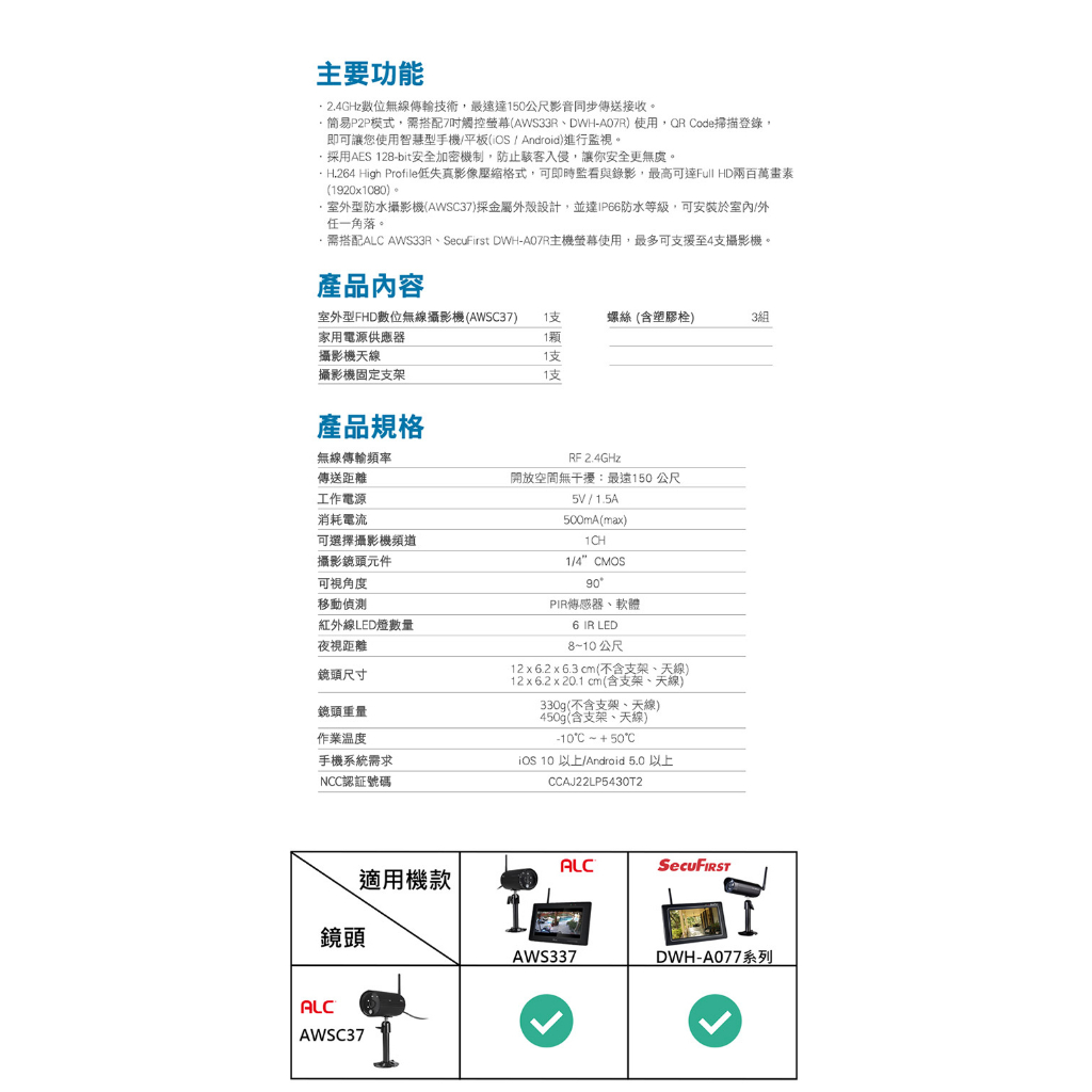 美國ALC AWSC37攝影機(需搭配指定型號主機)(原廠公司貨)