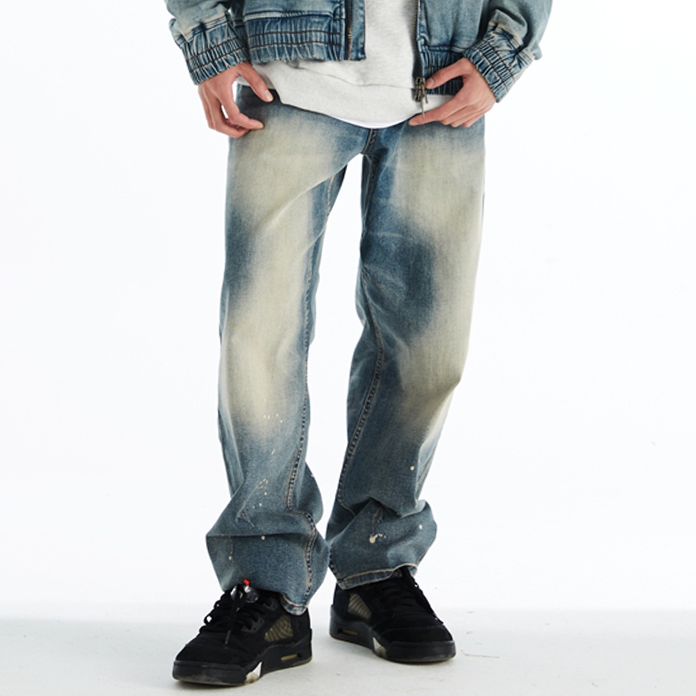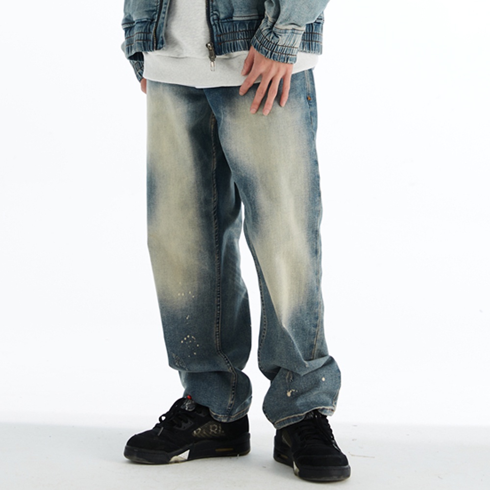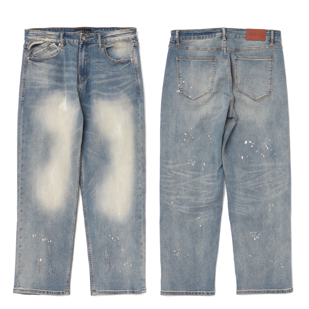 FairPlay x XMXX 藍 牛仔長褲 超彈性 復古 水洗 刷色 直筒 潑墨 寬鬆 美牌 寬褲 牛仔褲 F/W