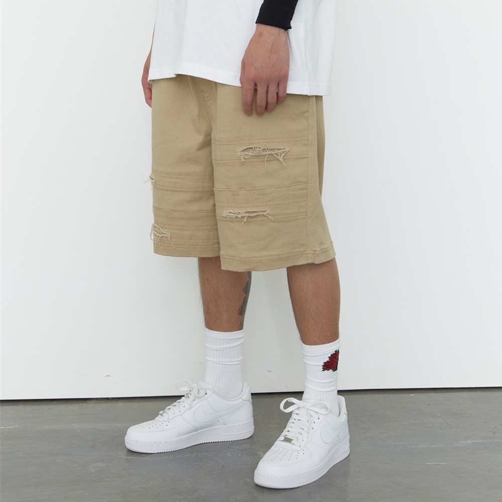 FairPlay Official 黑/卡其/白 五分短褲 刀割 破壞 鬆緊 抽繩 休閒 美牌 五分褲 工作褲 S/S