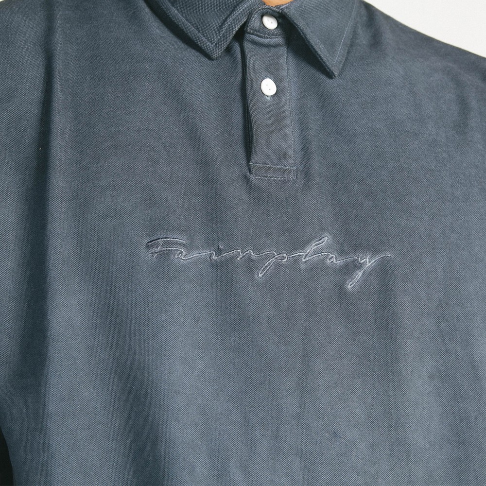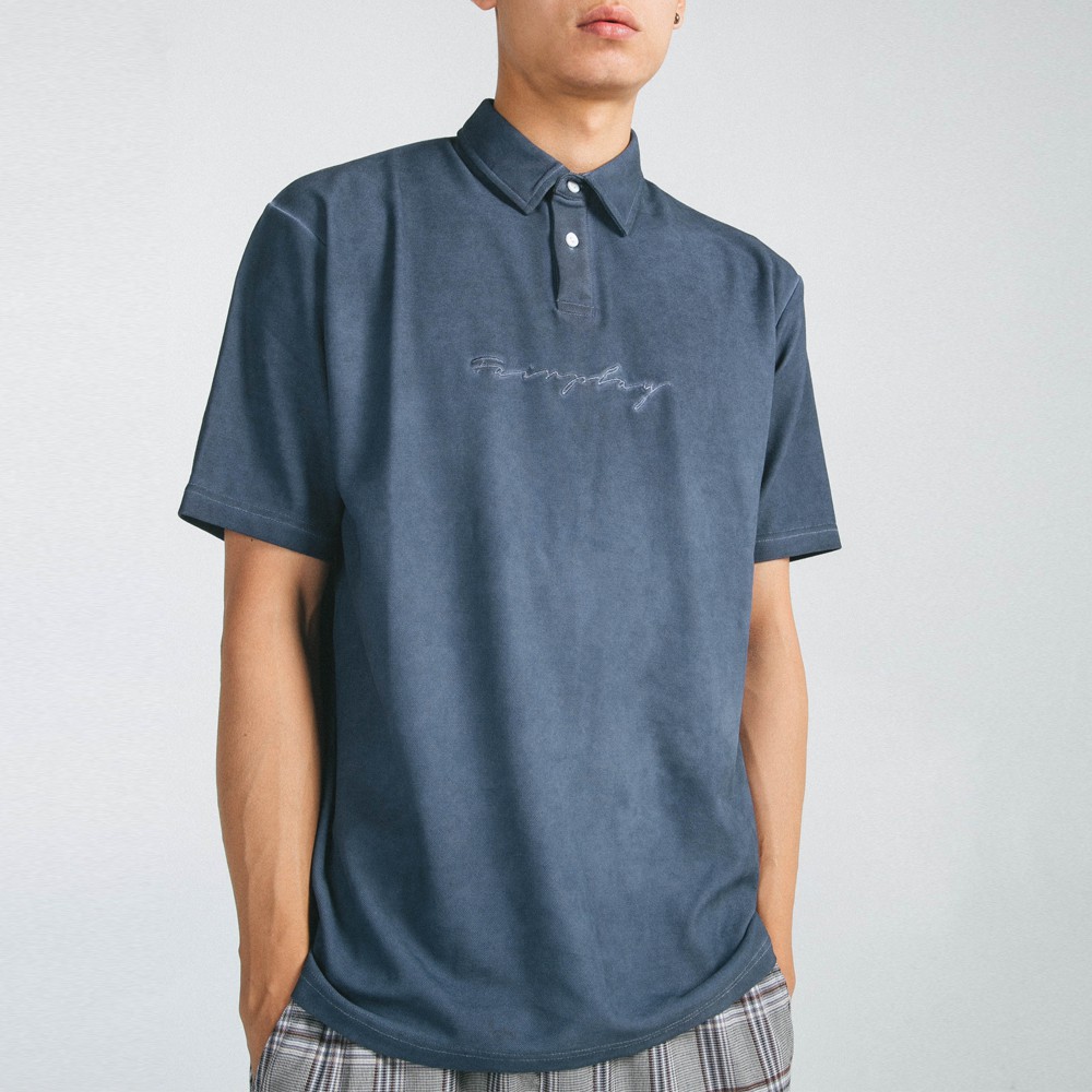 FairPlay Tavio 黑/藍 短袖T恤 復古 刷舊 煙燻 刺繡 休閒 美牌 上衣 短T Polo衫 S/S