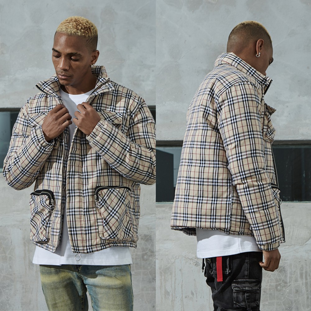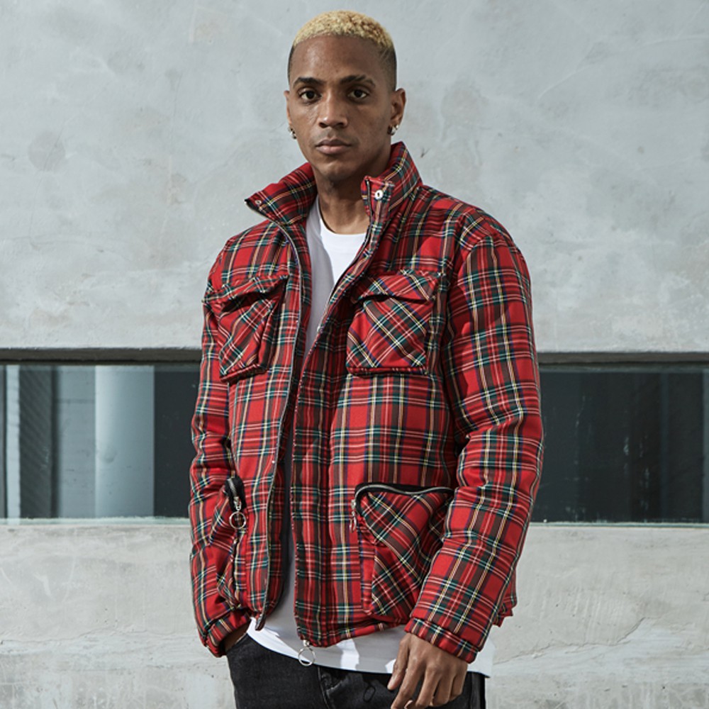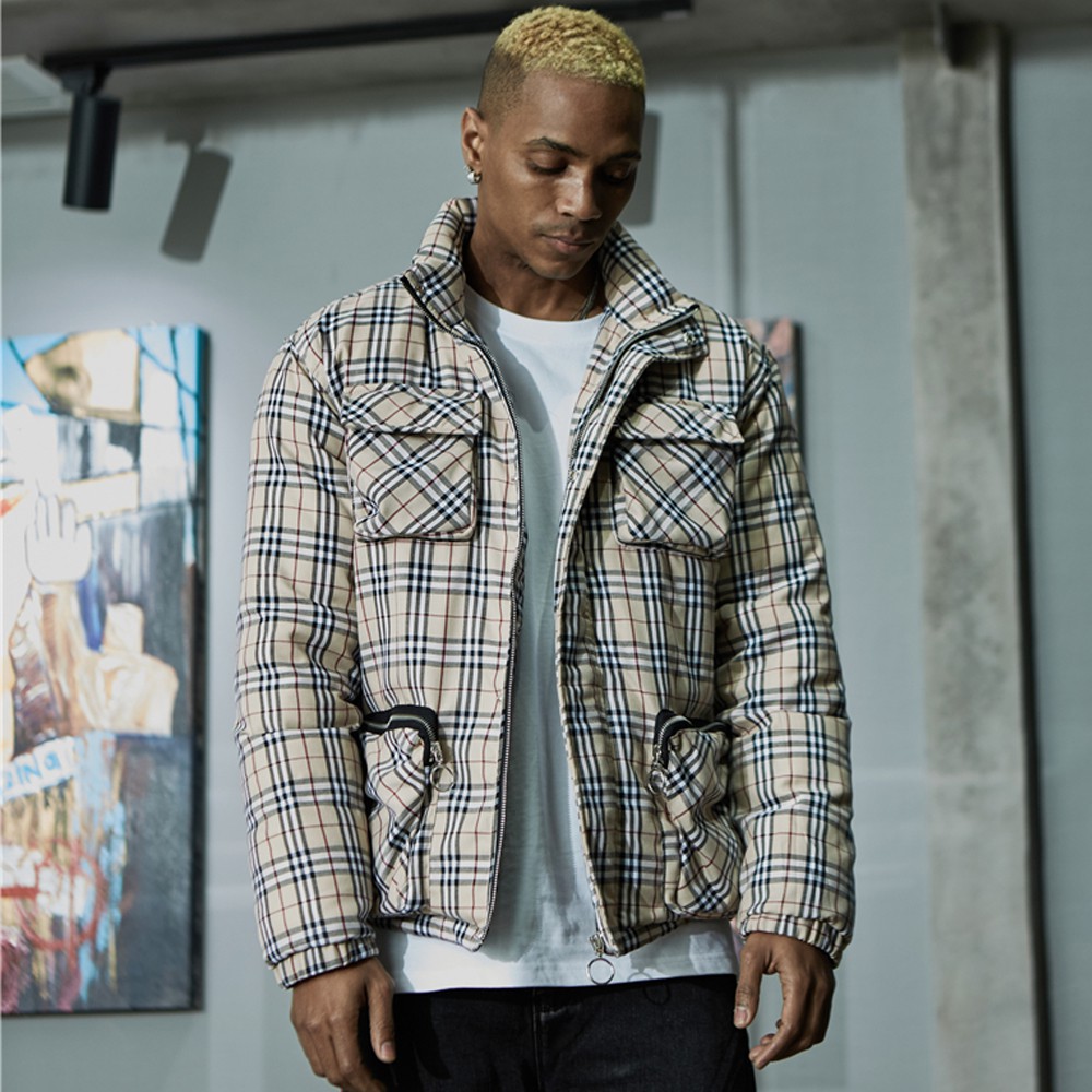 Profound Aesthetic 卡其/紅 白鴨絨外套 輕量 復古 格紋 長袖 夾克 潮流 美牌 英倫風 多口袋