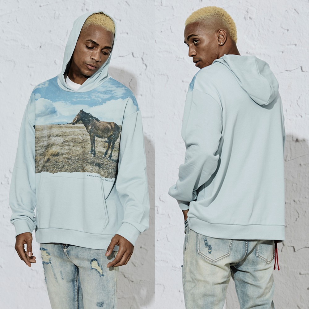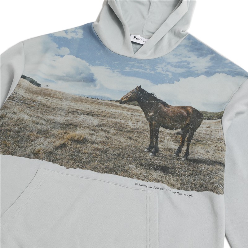Profound Aesthetic 藍灰 連帽T恤 寬鬆 落肩 純棉 休閒 潮流 印花 油畫 長袖 帽衫 美牌