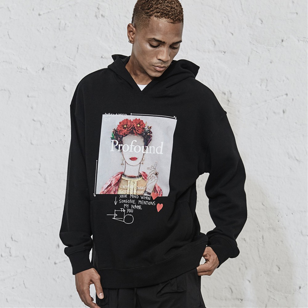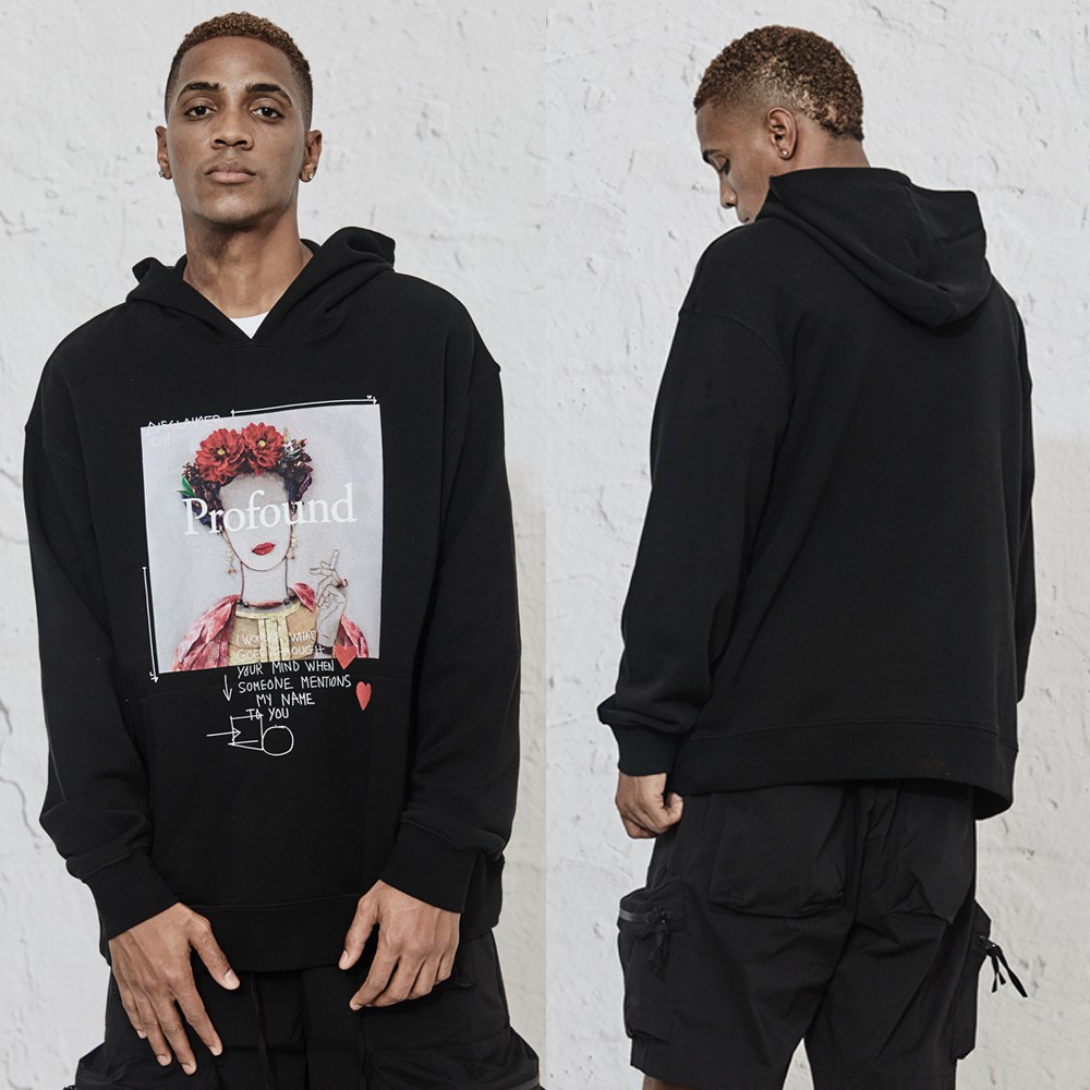 Profound Aesthetic 黑 連帽T恤 寬鬆 落肩 純棉 休閒 潮流 印花 長袖 帽衫 美牌 芙烈達
