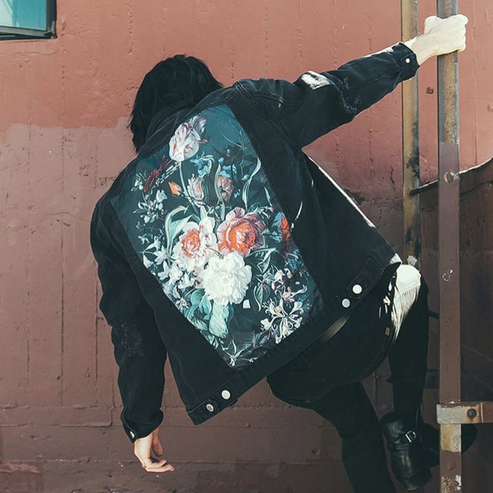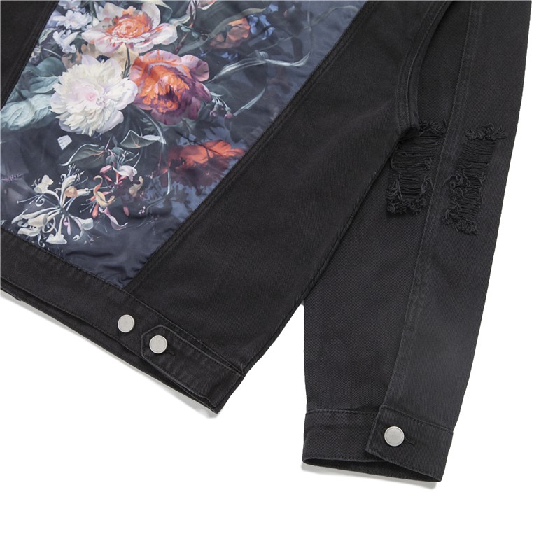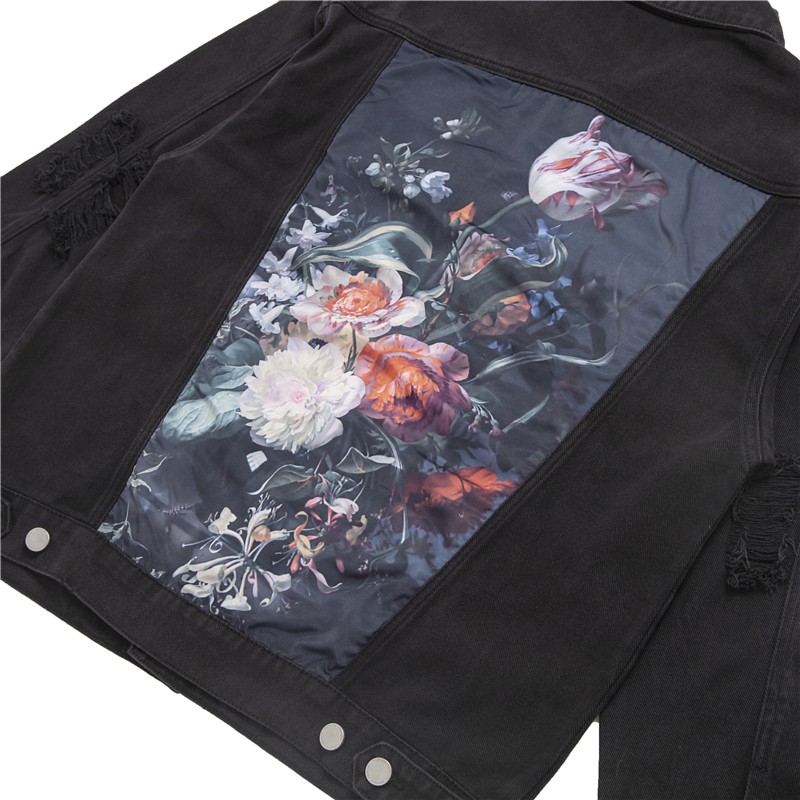 Profound Aesthetic 黑 牛仔外套 寬鬆 落肩 復古 水洗 仿舊 長袖 夾克 花卉 潮流 美牌 經典款