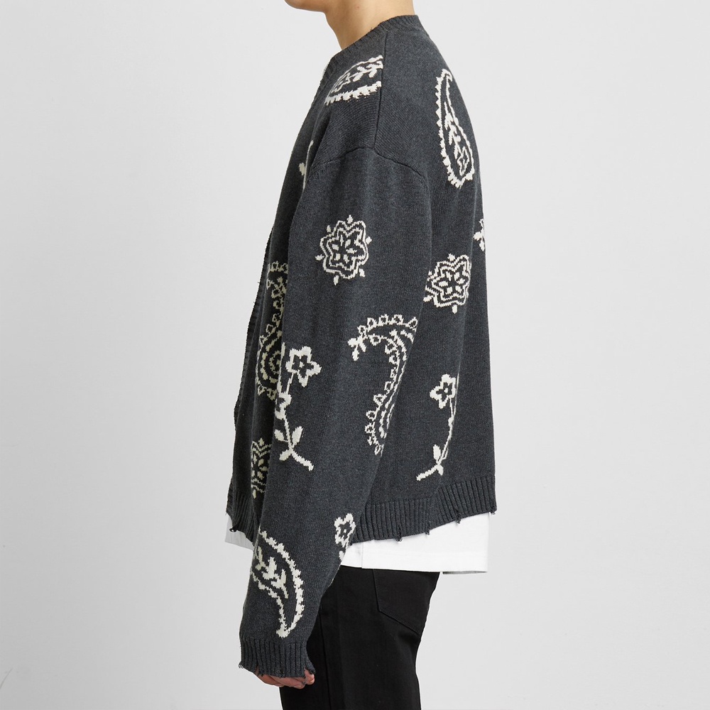Profound Aesthetic 黑 針織外套 寬鬆 落肩 休閒 潮流 長袖 上衣 美牌 V領 民族風 針織衫