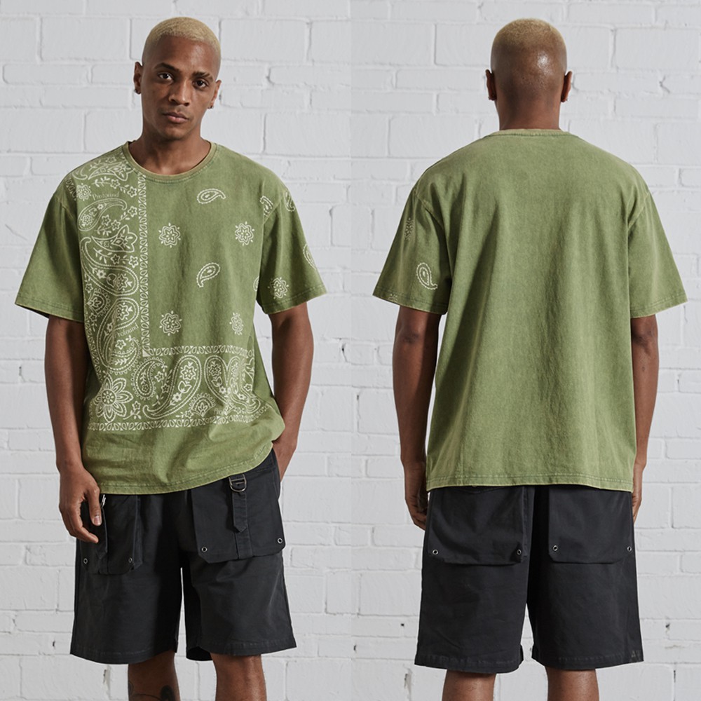 Profound Aesthetic 黑/綠 短袖T恤 寬鬆 落肩 水洗 做舊 潮流 上衣 美牌 短T 變形蟲 腰果花