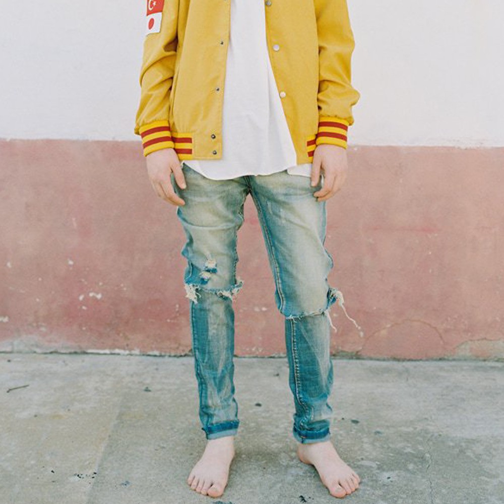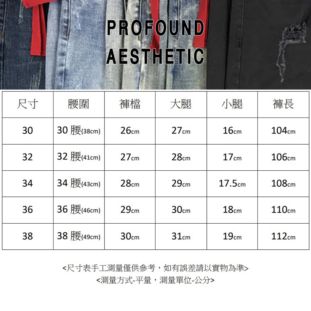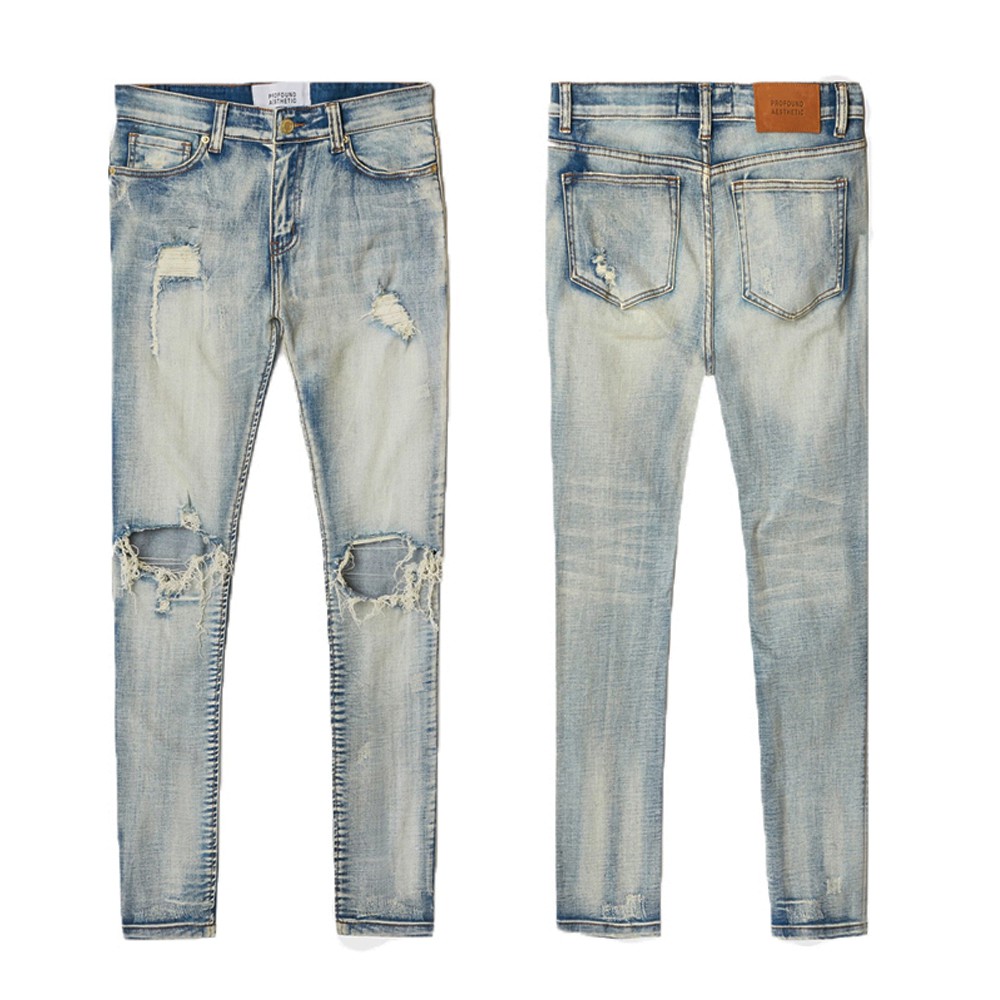 Profound Aesthetic 黑/藍 牛仔長褲 窄管 修身 彈性 水洗 刀割 破壞 破膝 窄版 長褲 牛仔褲