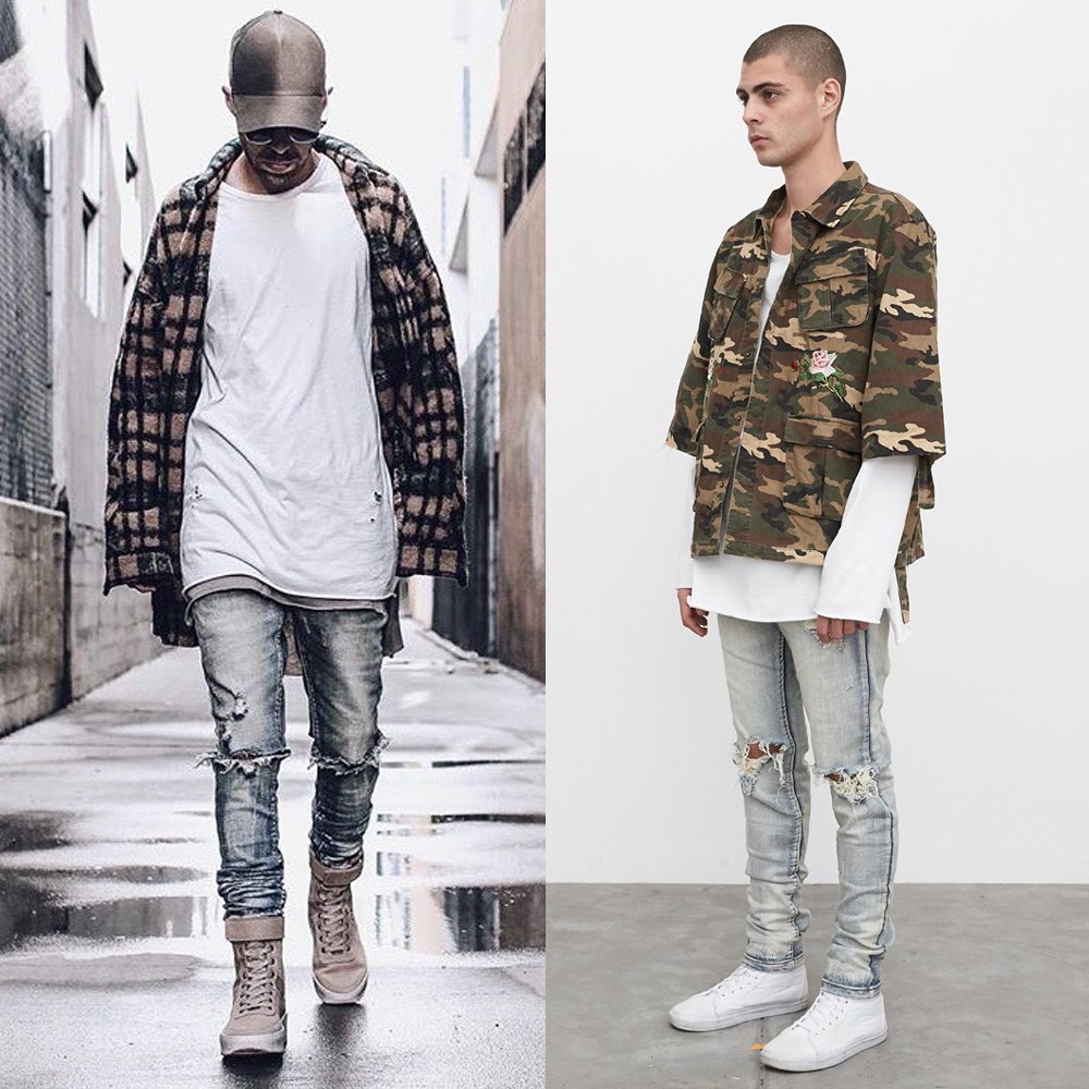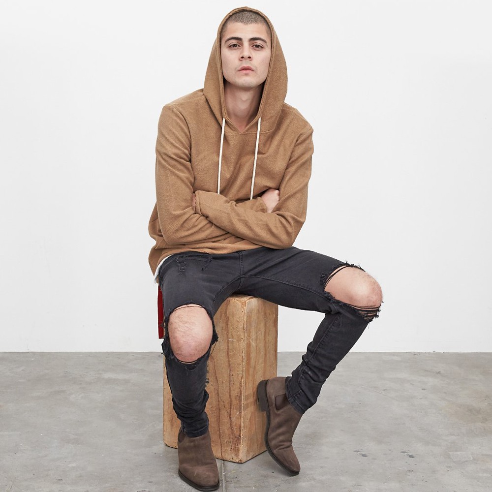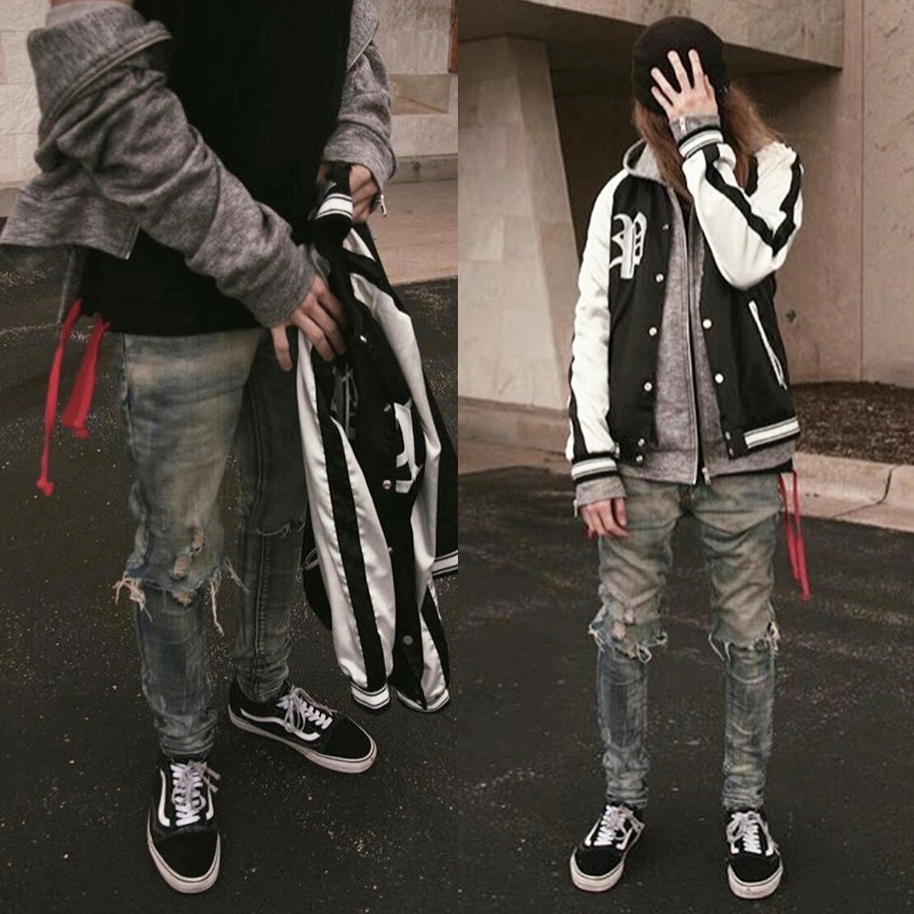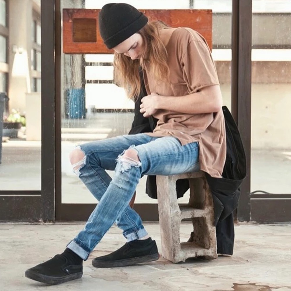 Profound Aesthetic 黑/藍 牛仔長褲 窄管 修身 彈性 水洗 刀割 破壞 破膝 窄版 長褲 牛仔褲