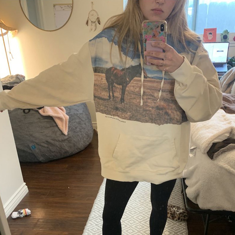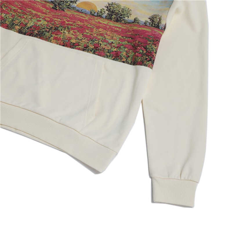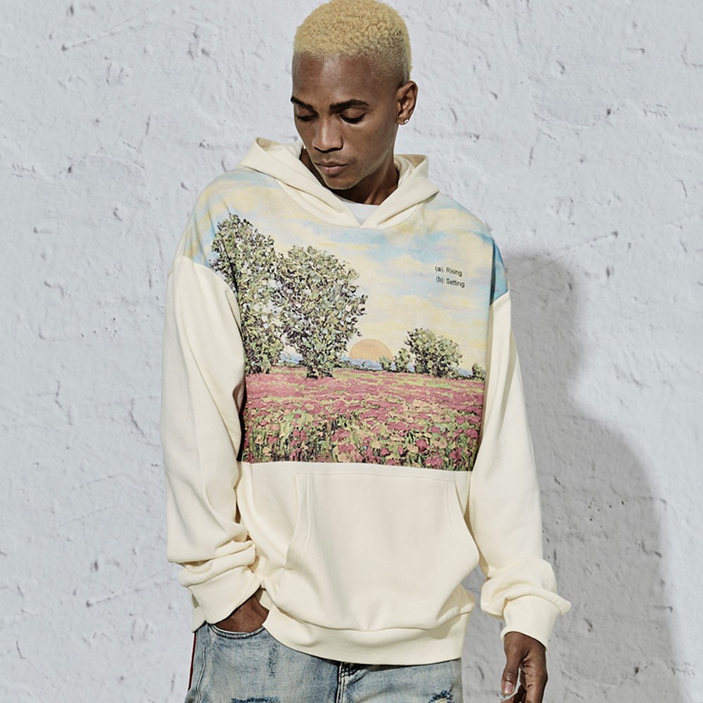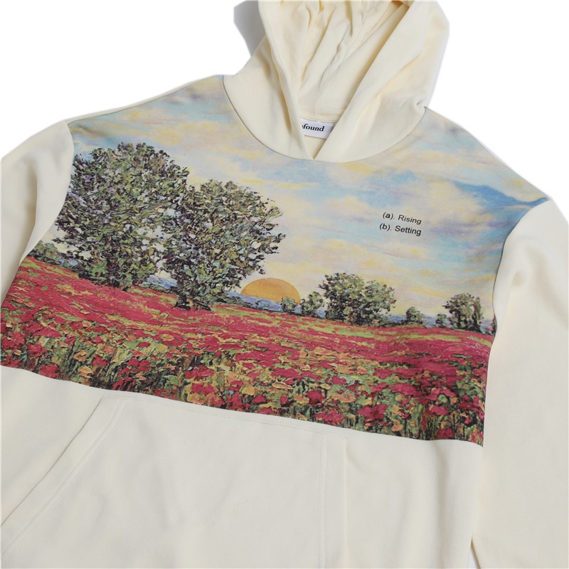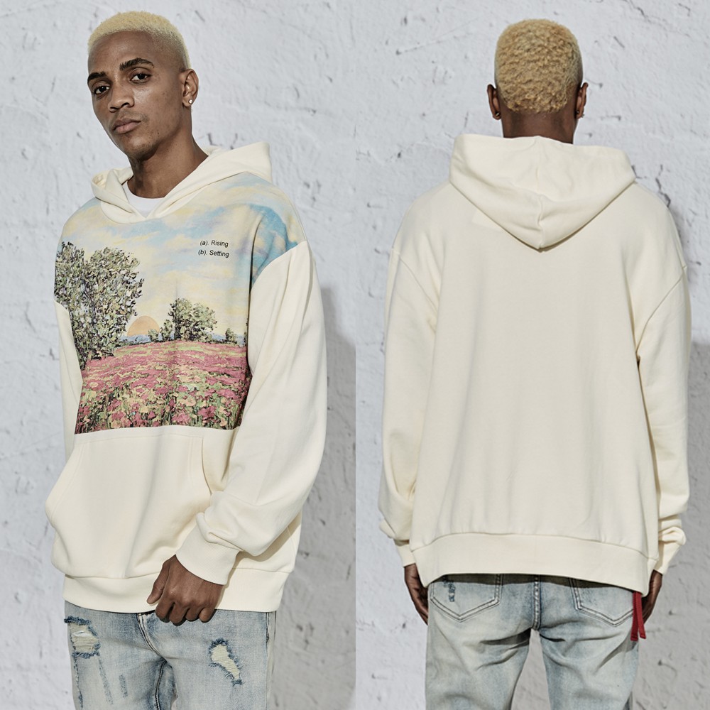 Profound Aesthetic 米白 連帽T恤 寬鬆 落肩 純棉 休閒 潮流 印花 油畫 長袖 帽衫 美牌
