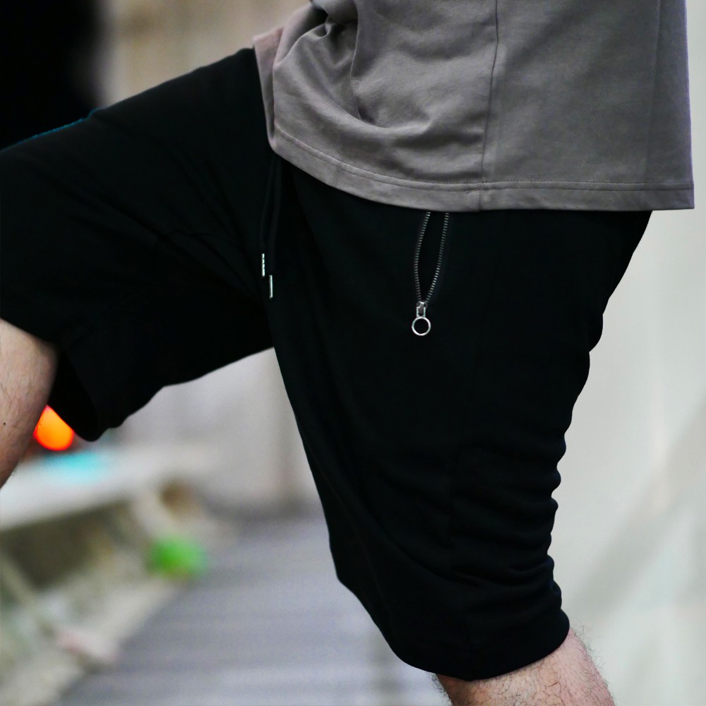 FairPlay Official 黑 五分短褲 鬆緊 抽繩 休閒 潮流 美牌 棉褲 五分褲 飛鼠褲 哈倫褲 S/S