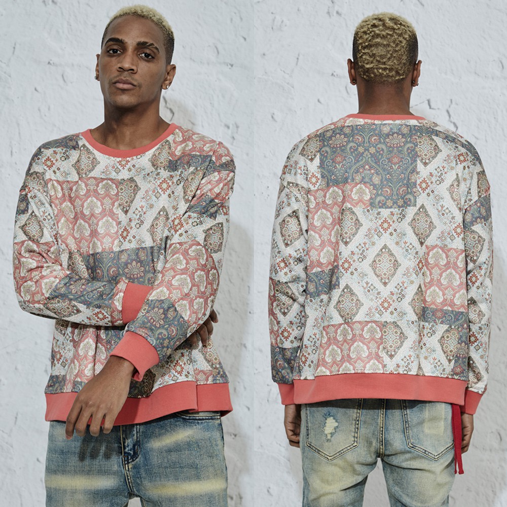 Profound Aesthetic 紅 大學T 衛衣 寬鬆 落肩 休閒 潮流 滿版 印花 長袖 長T 美牌 民族風