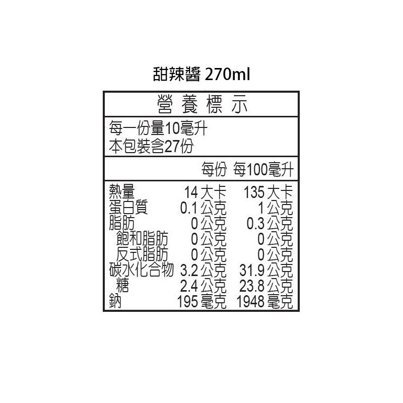 高慶泉 甜辣醬 270ml (公司直售)