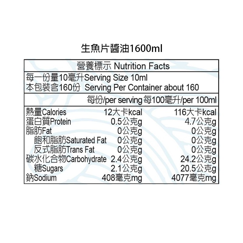 高慶泉 生魚片醬油1600ml(公司直售)[非基因改造黃豆釀製/無添加焦糖色素]