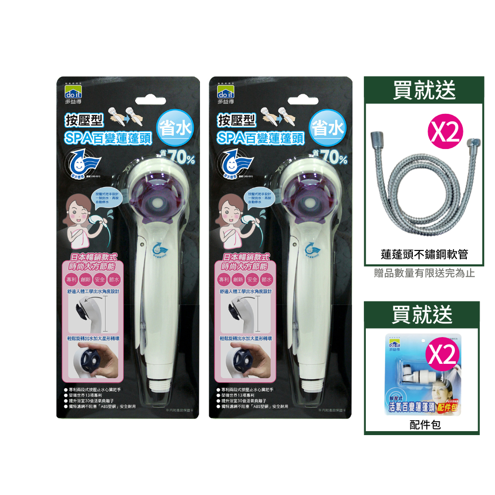 【多益得】強力加壓式按壓式Spa省水蓮蓬頭_省水標章認證/