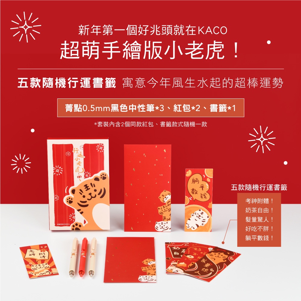 【KACO】菁點 中性筆 行運小老虎套裝 (黑色中性筆+書籤+紅包) (台灣現貨) 禮物 禮盒 日本筆芯