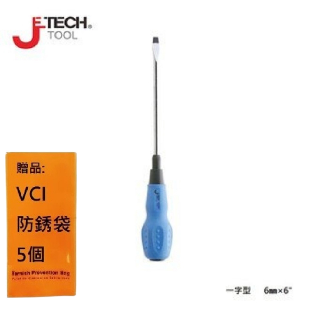 【JETECH】軟柄強力起子 一字型 6㎜×6"-GC-ST6-150(-)-1570 高強度鉻釩鎳鋼刀桿