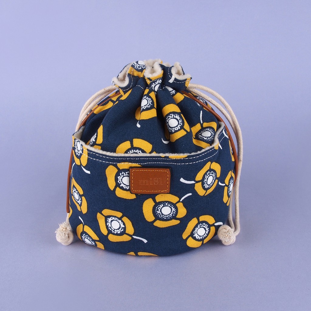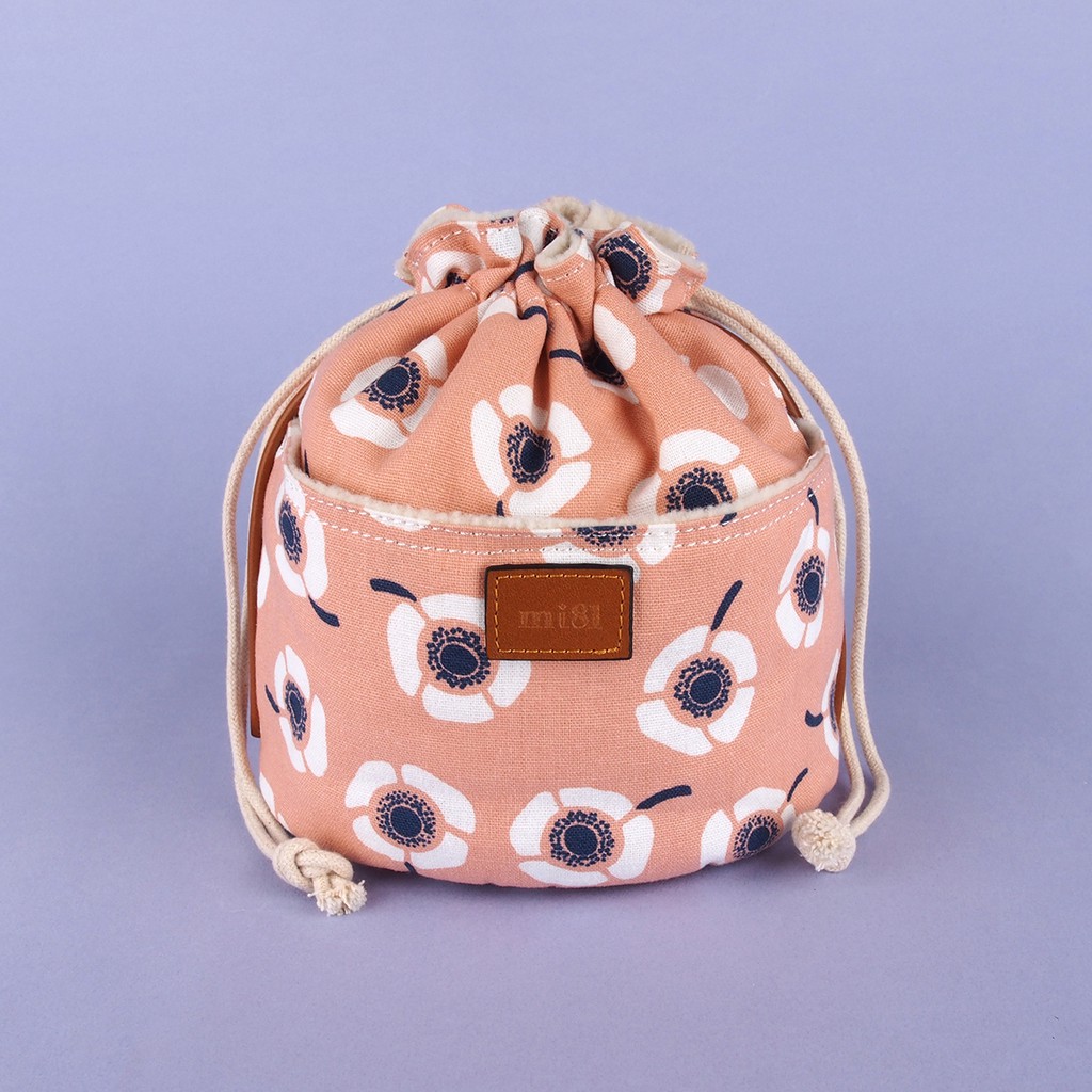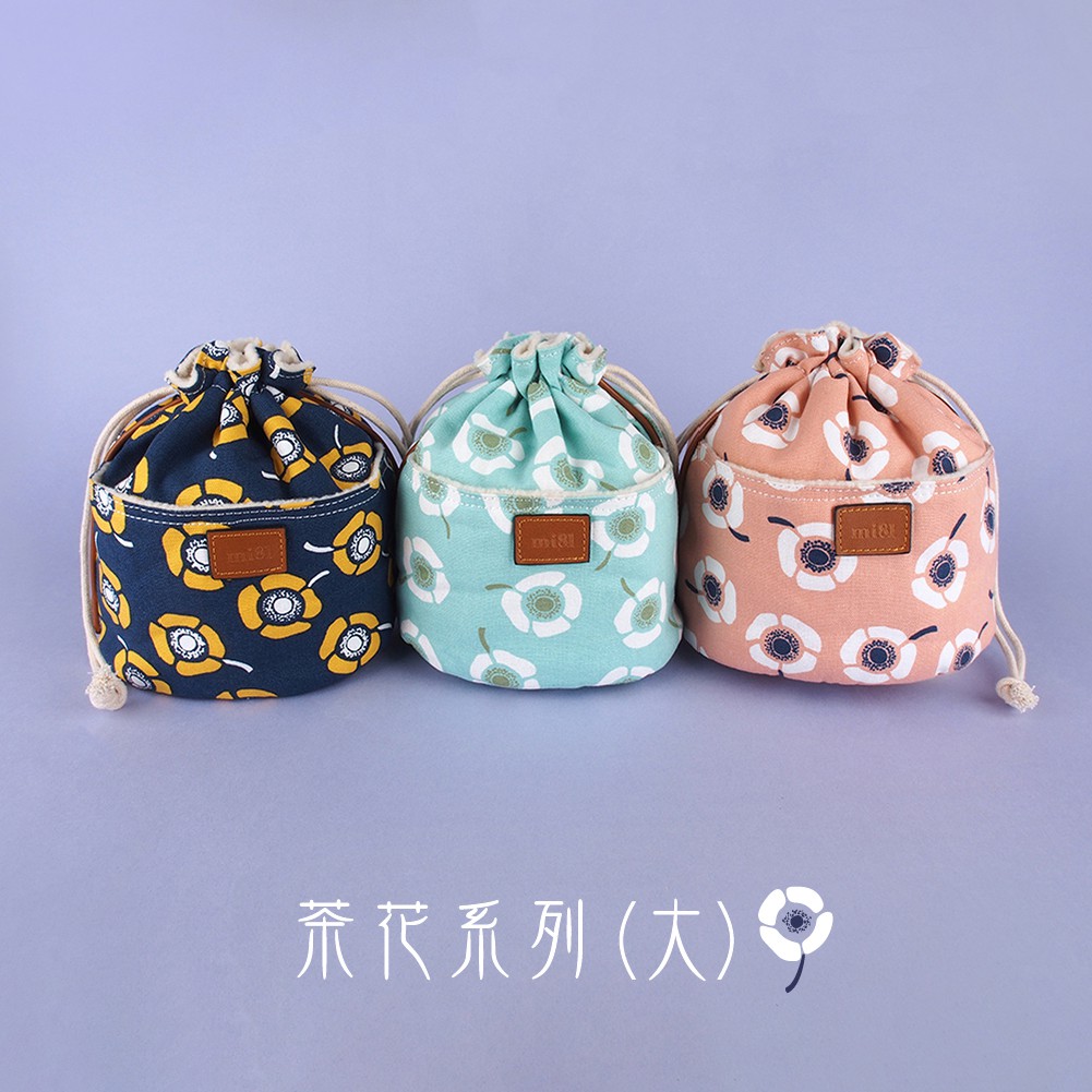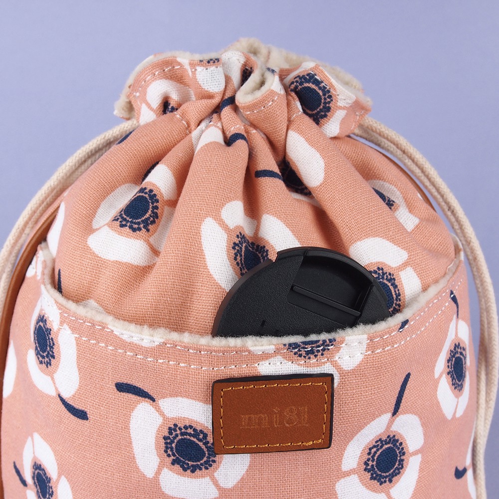 mi81 花布相機鏡頭袋/束口袋 茶花系列 (大)