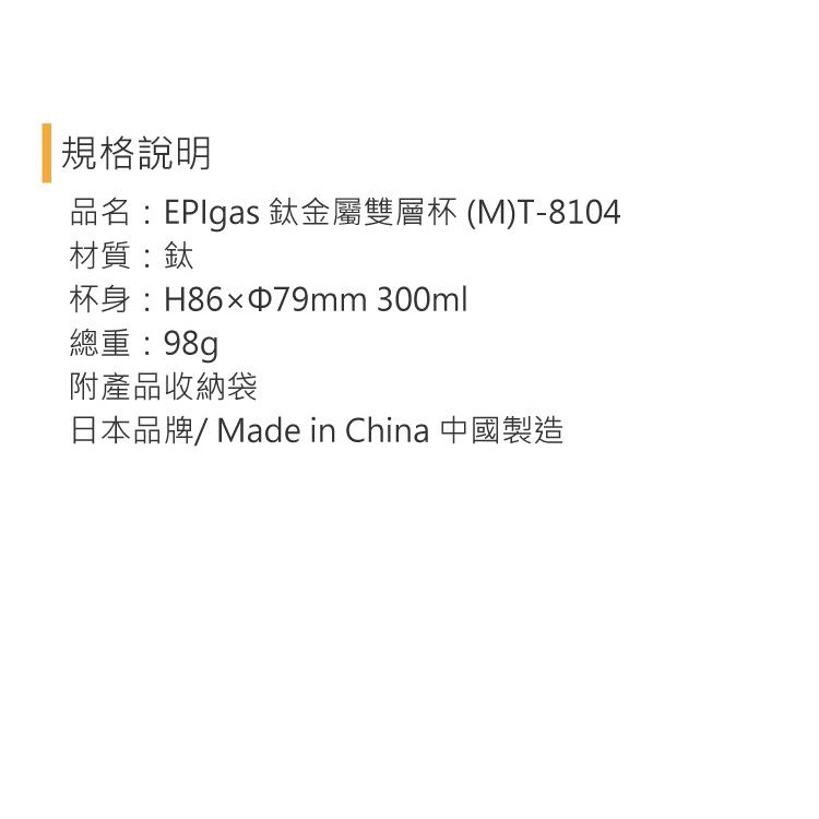 EPIgas 鈦金屬雙層杯(M) 330ml T-8104