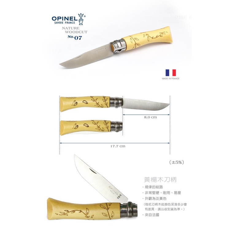 OPINEL No.07 Nature Woodcut 自然圖騰系列折刀-葉子圖騰 001551