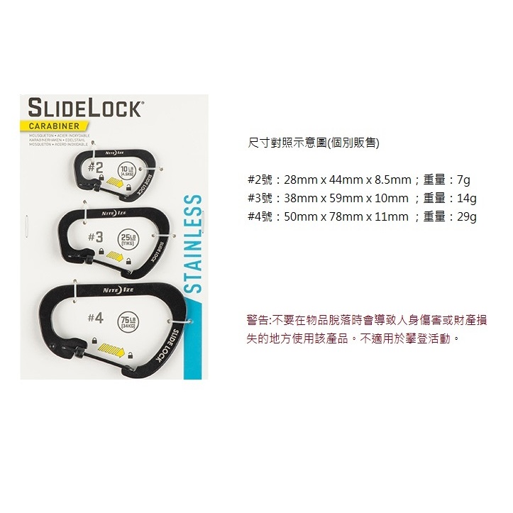 NITE IZE 帶鎖C型扣 3號 黑鈦CSL3-01-R6 / 銀色 CSL3-11-R6
