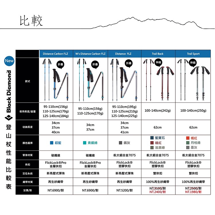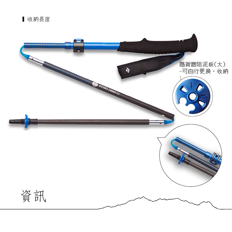 Black Diamond Distance Carbon FLZ 碳纖維摺疊登山杖 112537 超藍 成對販售