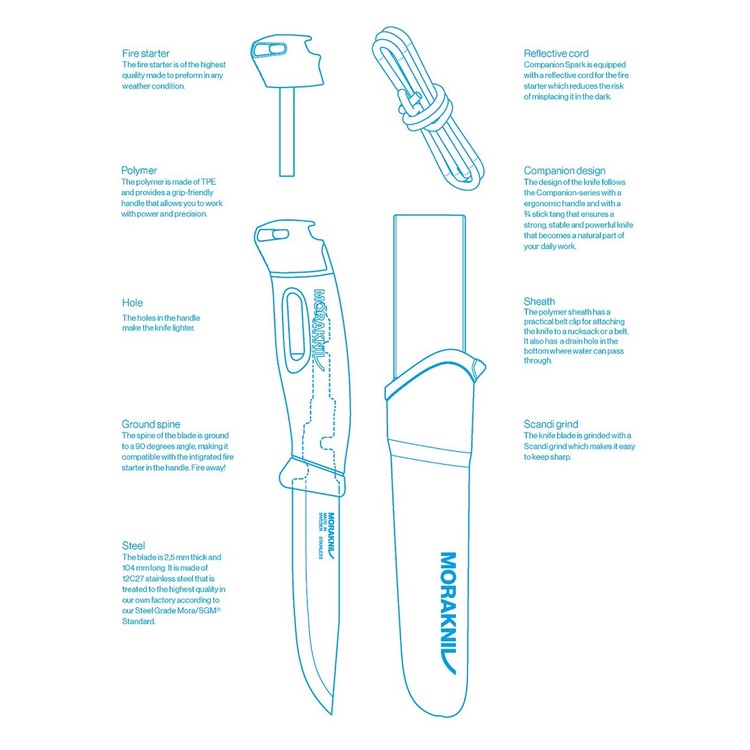 MORAKNIV Companion Spark 不鏽鋼直刀(附打火石/露營小刀) 瑞典製 13567 黑