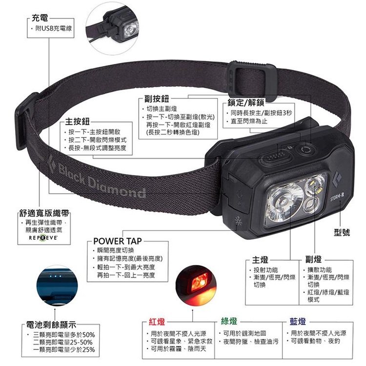 Black Diamond Storm 500-R 充電頭燈/登山頭燈 BD 620675