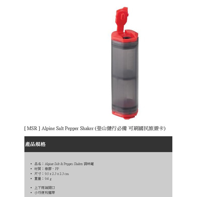 MSR 戶外調味罐/鹽罐/胡椒罐/露營調味罐 Alpine Salt Pepper Shaker 05338