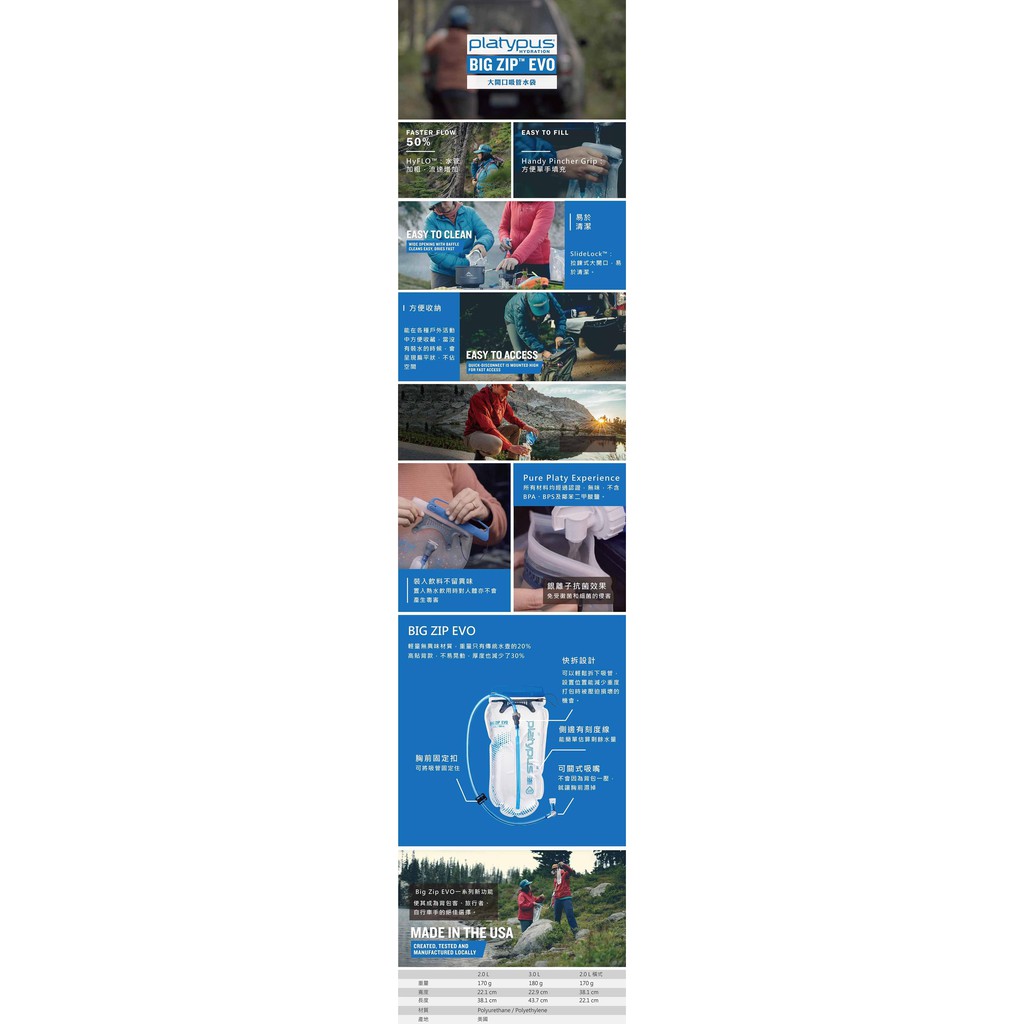 Platypus 鴨嘴獸 水袋/運動水袋 Big Zip EVO 大開口吸管水袋 3L 10857 活動特價