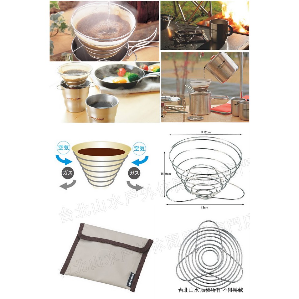 UNIFLAME 咖啡濾架/不鏽鋼咖啡濾紙架/手沖咖啡架 18-8 304 可折疊輕巧4人份 U664018
