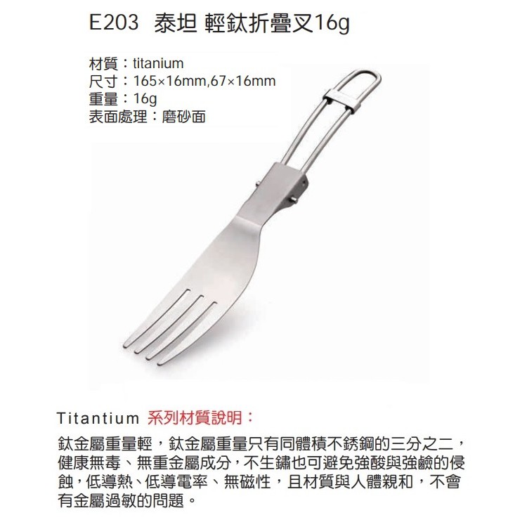 Outdoor Active OA 山貓 E203 泰坦 輕鈦摺疊叉16g 鈦合金叉子/露營餐具/登山餐具/環保餐具