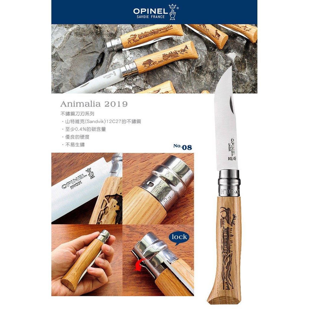 OPINEL法國製不鏽鋼折刀/露營小刀/野外折刀 法國刀 No.08 糜鹿雕刻 OPI 002332