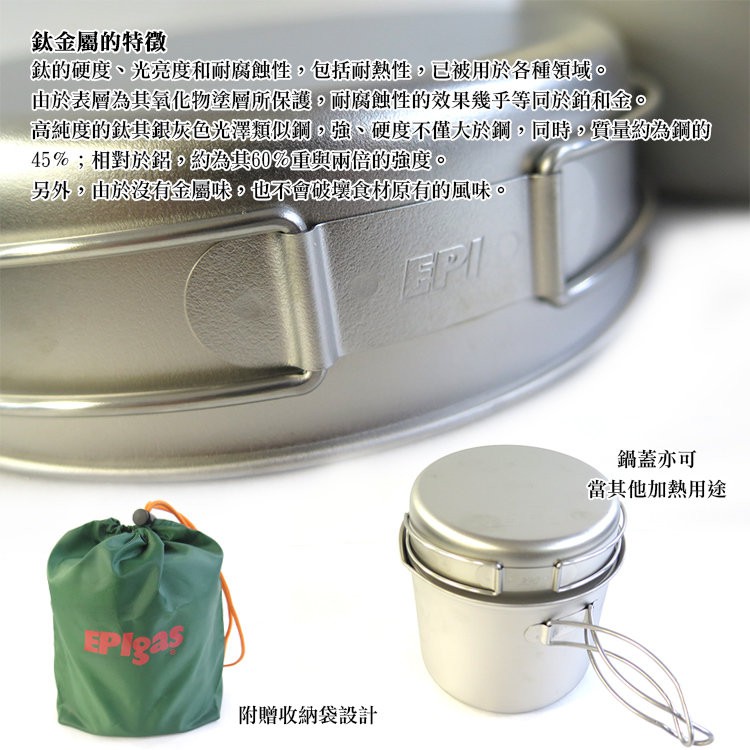 EPIgas 登山鈦鍋/鈦合金鍋組 2鍋2蓋 鈦BP炊具組 T-8008