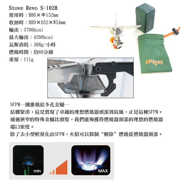 EPIgas 登山爐/攻頂爐/瓦斯爐 Stove Revo S-1028