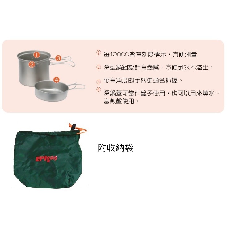 EPIgas 鈦合金個人鍋1350ml/輕量鈦鍋/戶外套鍋/鋁塗層/淺型套鍋/1鍋1蓋 TS-104