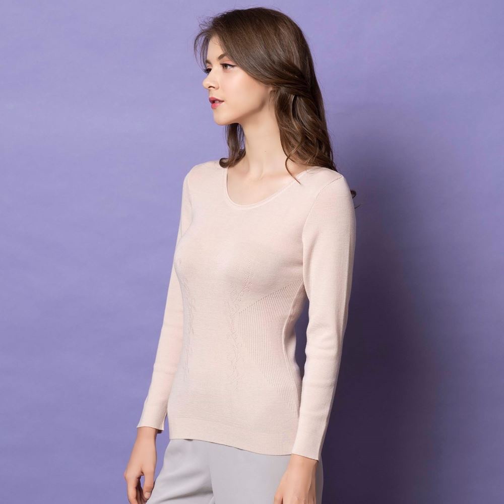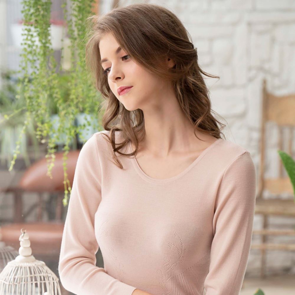 (蝦皮官方商城免運)華歌爾-美麗諾超細羊毛M-LL圓領長袖-保暖衣(粉膚) LT891721UR