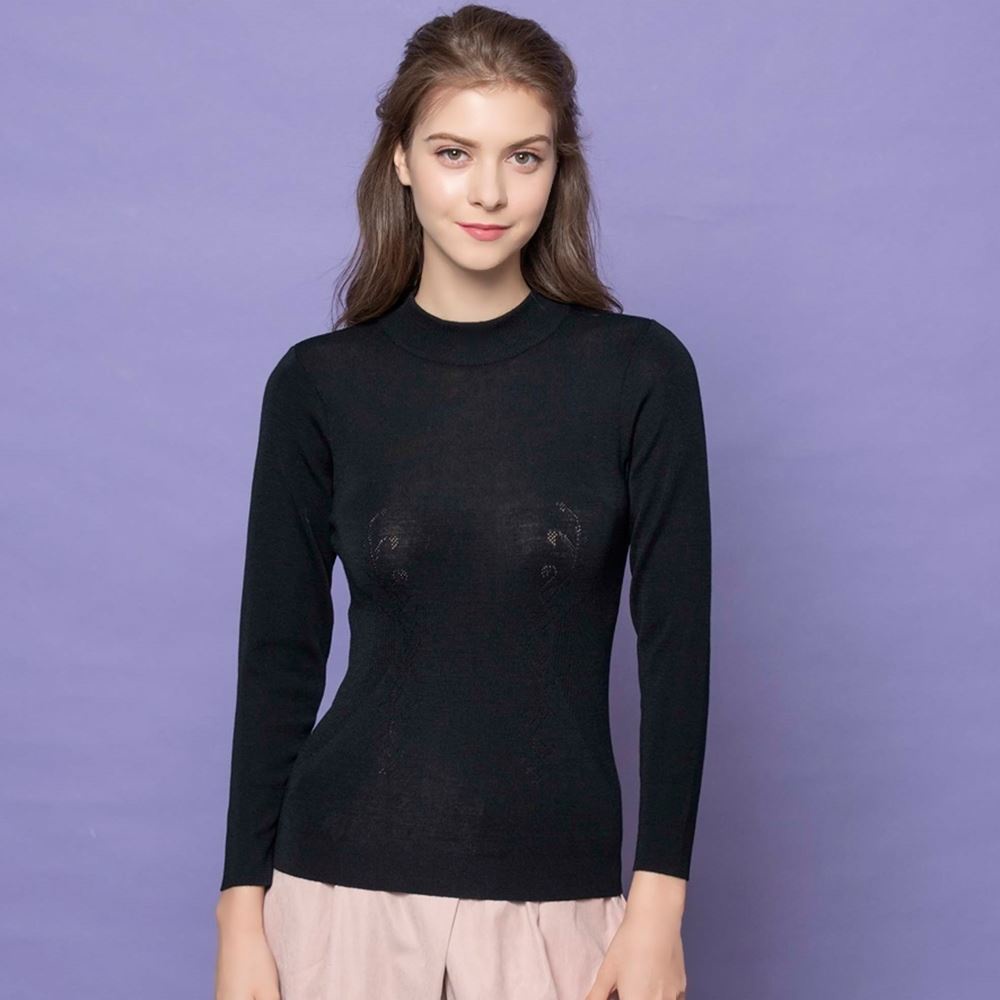 (蝦皮官方商城免運)華歌爾-美麗諾超細羊毛 M-LL立領長袖保暖衣(黑色) LT891821BL