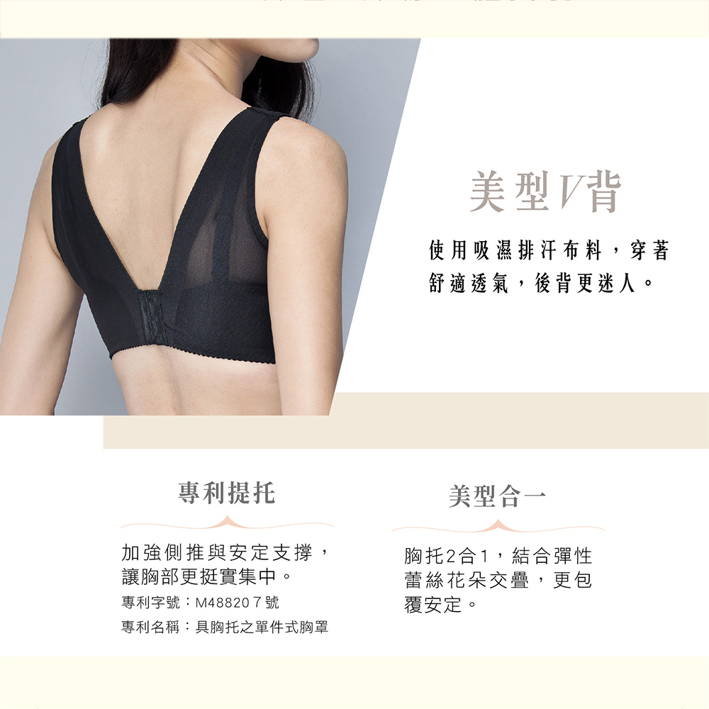 (蝦皮官方商城免運)華歌爾-摩奇X胸托 B-E 罩杯調整型內衣(黑)胸托胸罩2合一-雙提托專利-止滑肩帶-ZB4676B