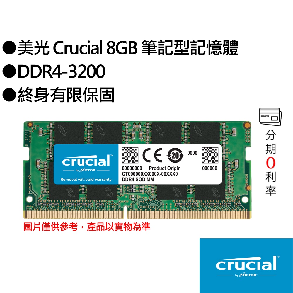 美光 Crucial 8GB DDR4-3200 筆記型記憶體