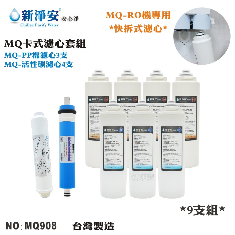 【龍門淨水】MQ快拆卡式RO機年份濾心9支套組 50G RO膜 ST-100%椰殼顆粒活性碳 台灣製造(MQ908)