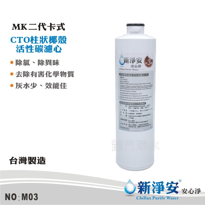 【新淨安】MK二代卡式CTO椰殼柱狀活性碳濾心 除氯 除色 除異味 好更換 台灣製造(M03)