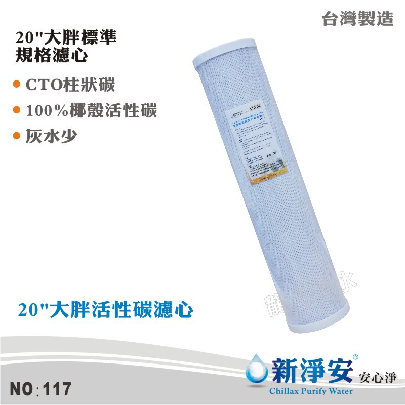 【新淨安】20英吋大胖CTO壓縮柱狀椰殼活性碳濾心 除氯 除色 除異味 台灣製造(117)