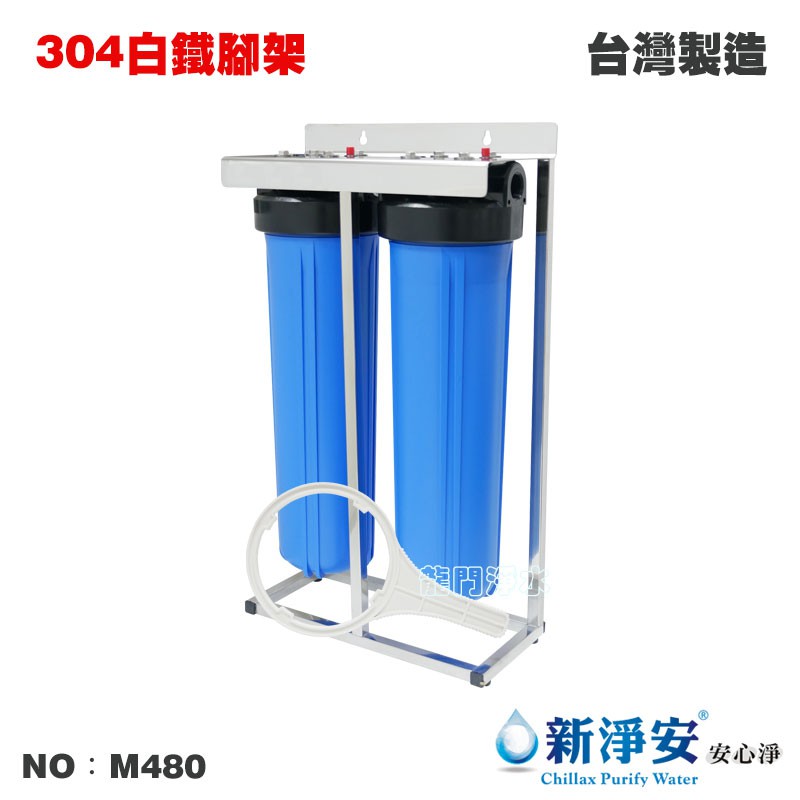 【龍門淨水】20英吋大胖二管過濾器-2藍-白鐵腳架式 1英吋/1英吋半 台灣製造(M480)