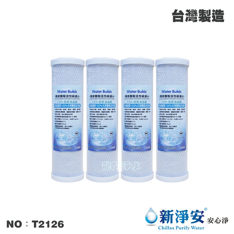 【Water Builds】10英吋CTO椰殼壓縮柱狀活性碳濾心4支組 NSF【龍門淨水】(T2126)