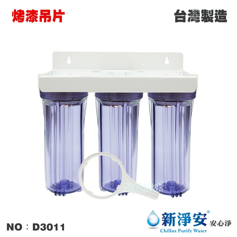 【龍門淨水】10英吋一般三管過濾器-3透-烤漆吊片式 2分/3分/4分內牙 台灣製造(D3011)