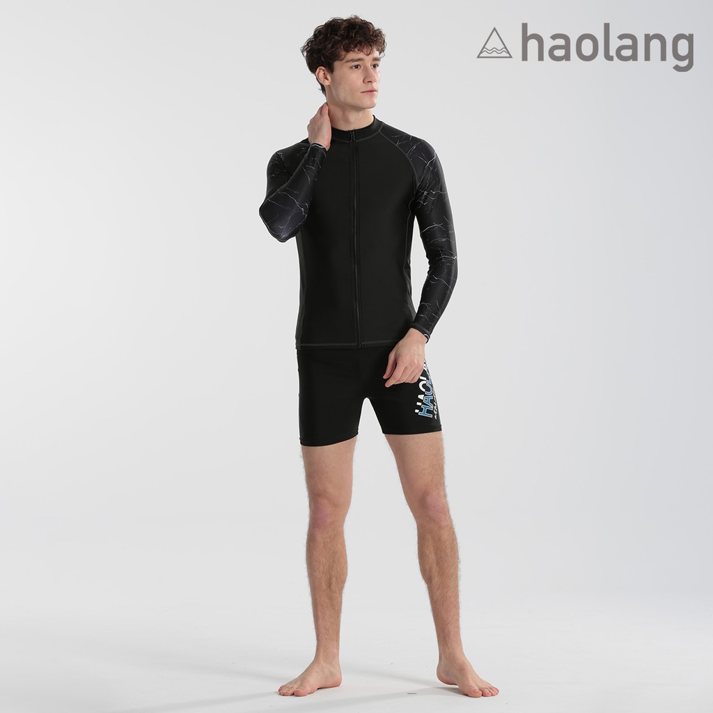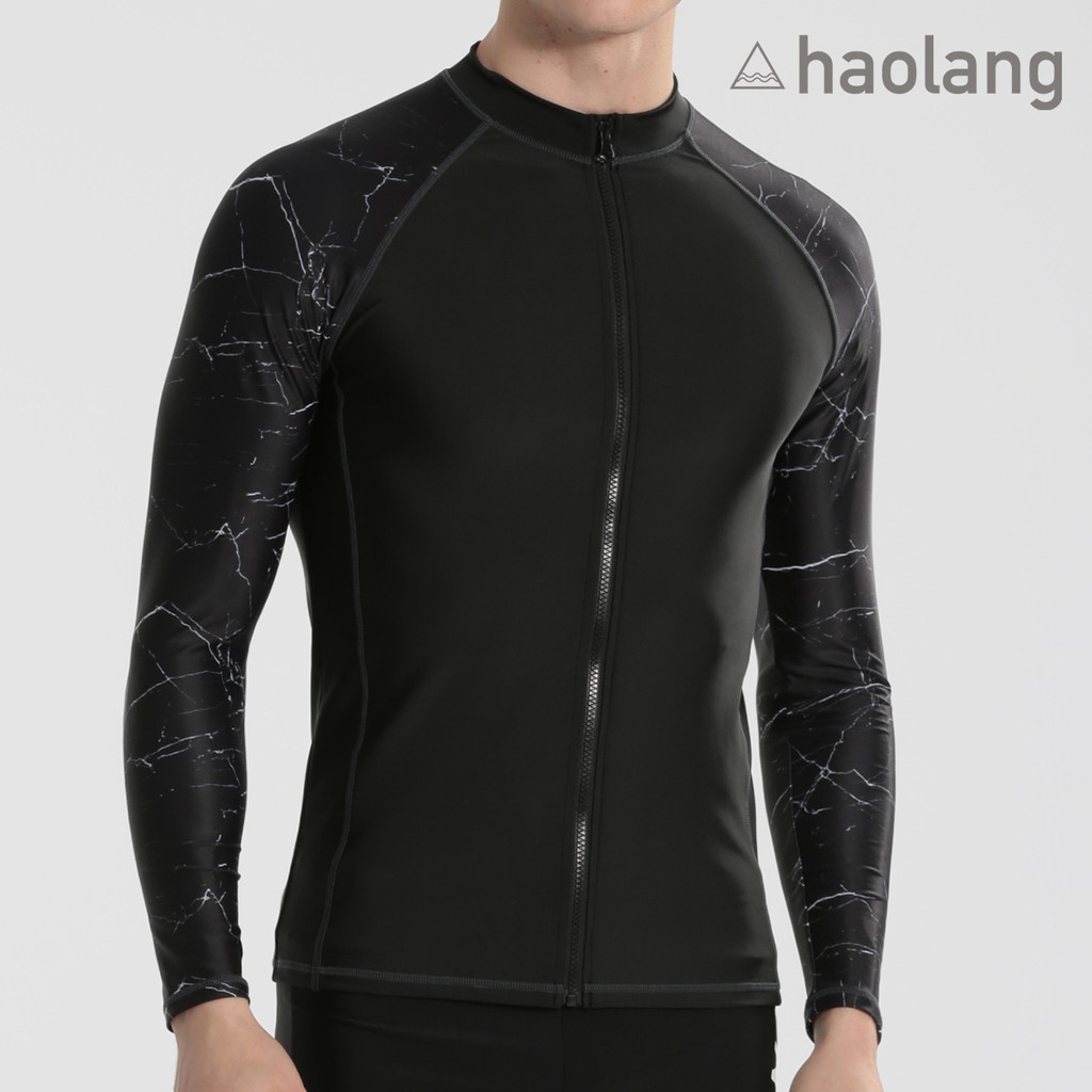 Haolang 大理石長袖拉鍊泳衣/大尺碼/水母衣/防曬