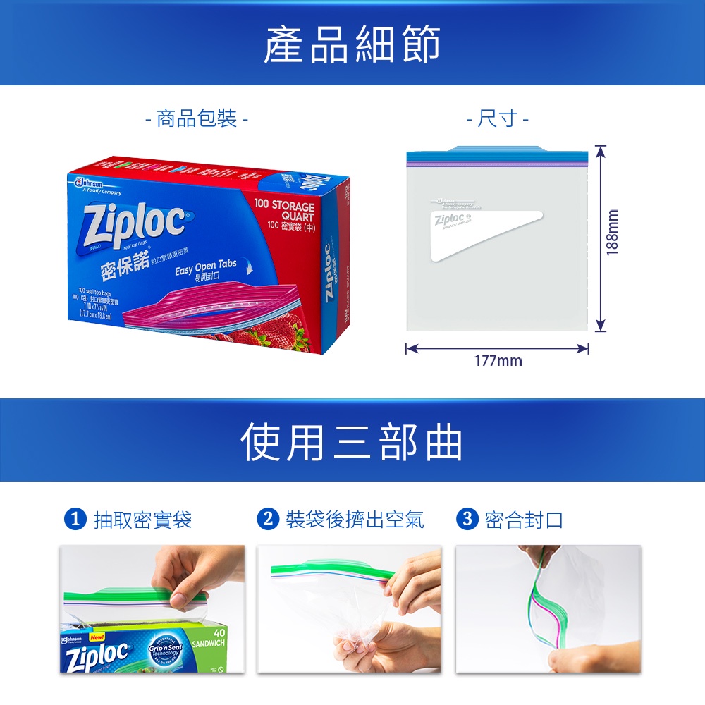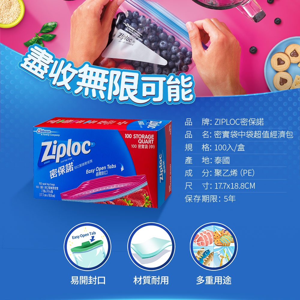 ZIPLOC 密保諾 密實袋中袋100入/盒x12盒-箱購組 夾鏈袋 舒肥 拉鍊袋 保鮮袋 保鮮袋