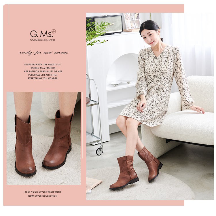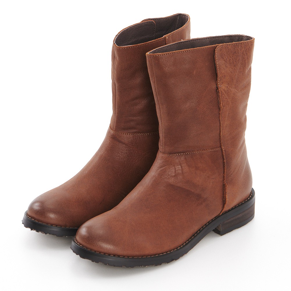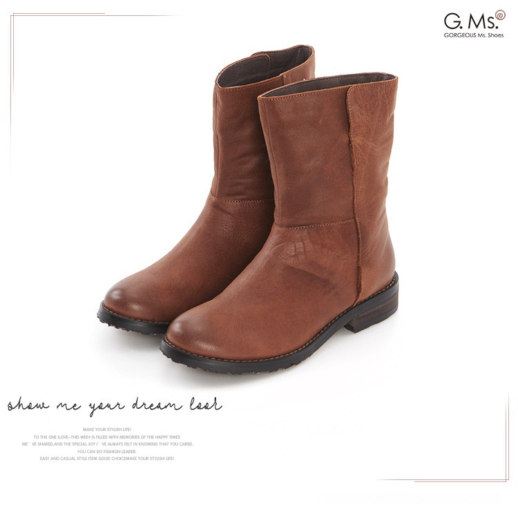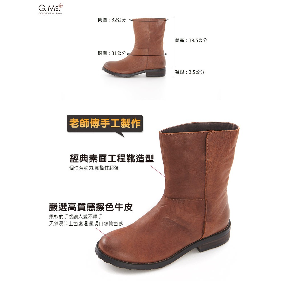 G.Ms. 擦色牛皮素面中筒工程靴-咖啡34碼
