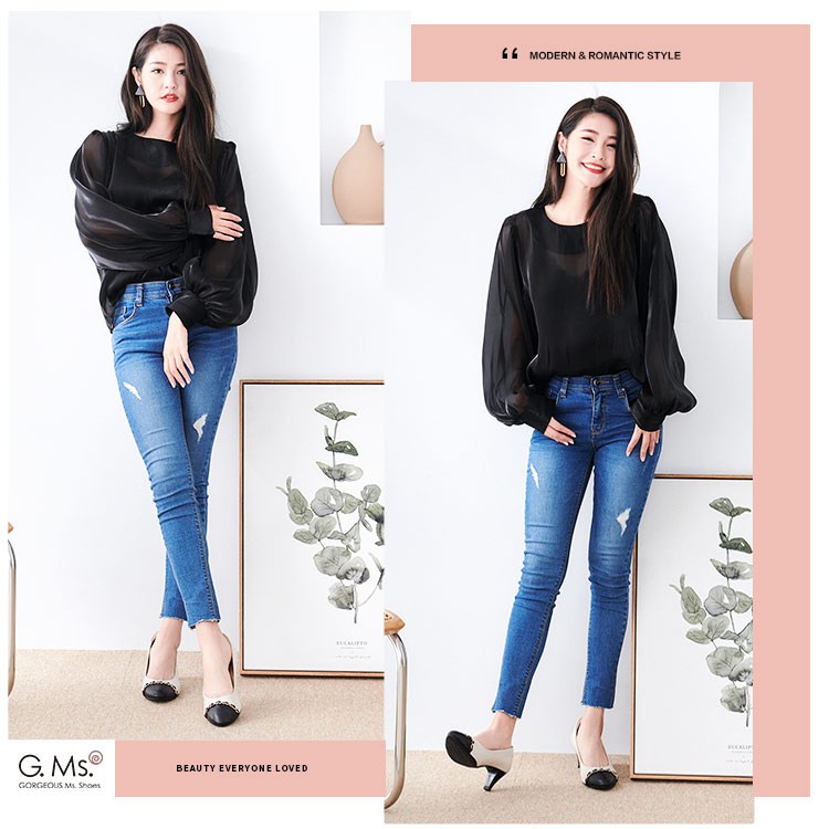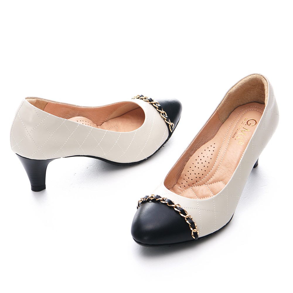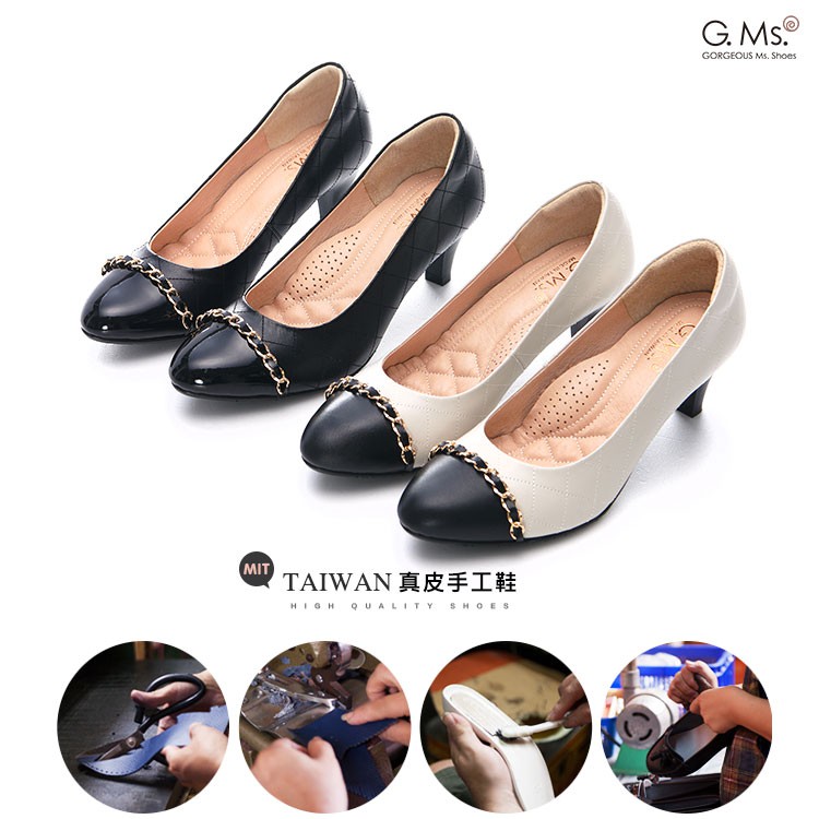 G.Ms. MIT系列-小香風金屬鍊條牛皮菱格車線中跟鞋-杏米