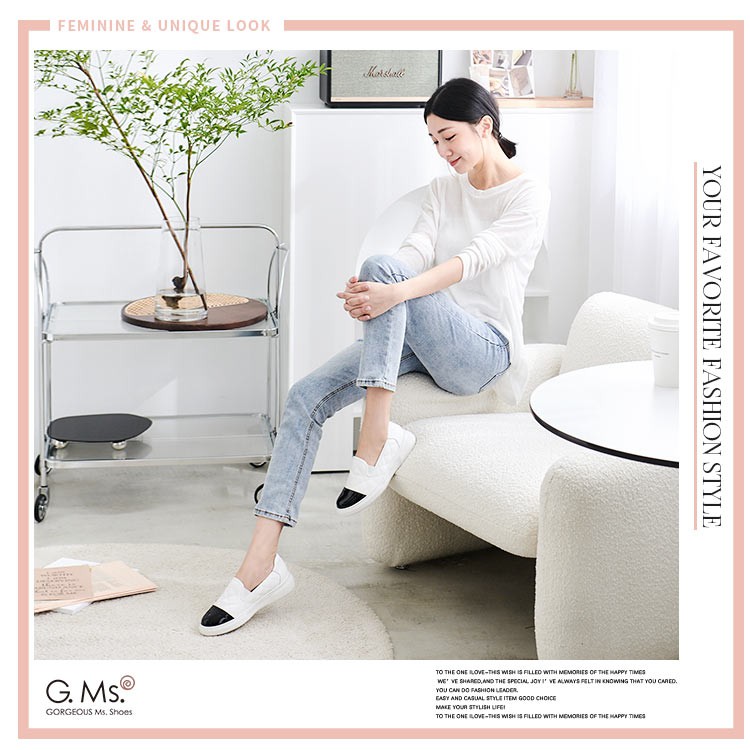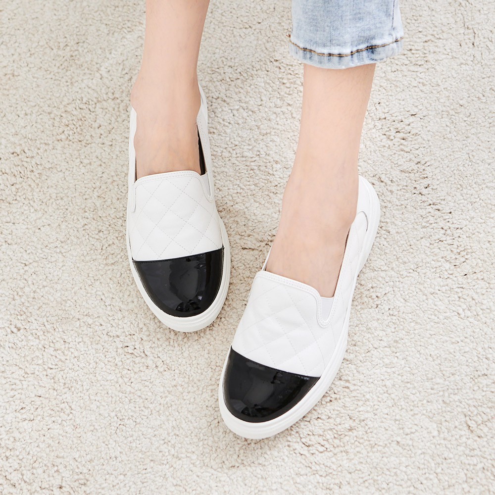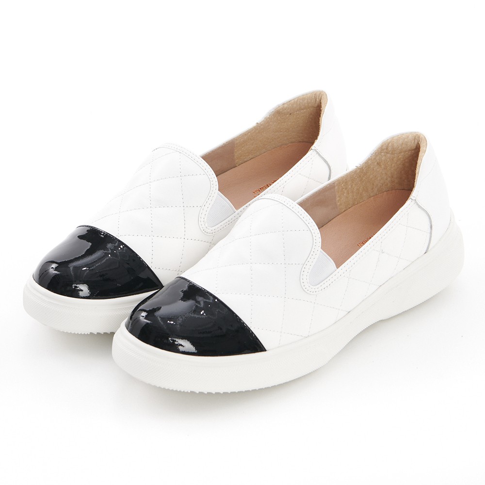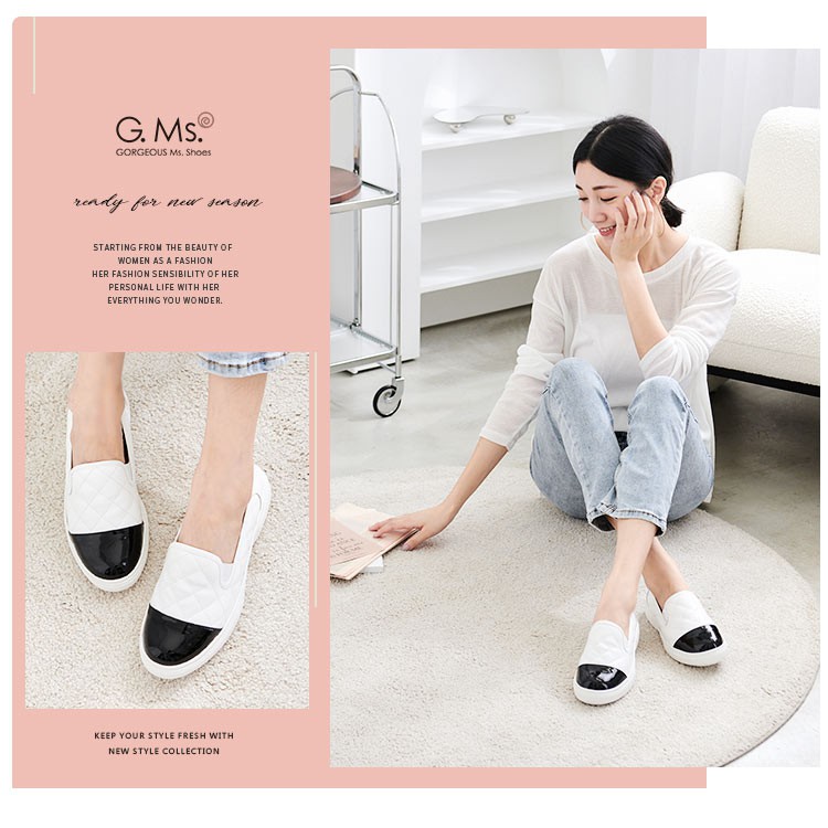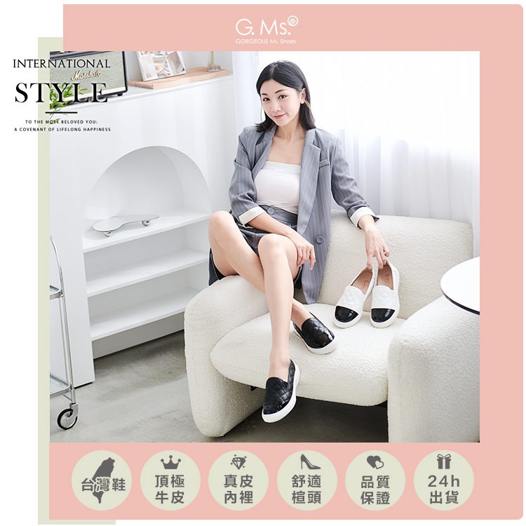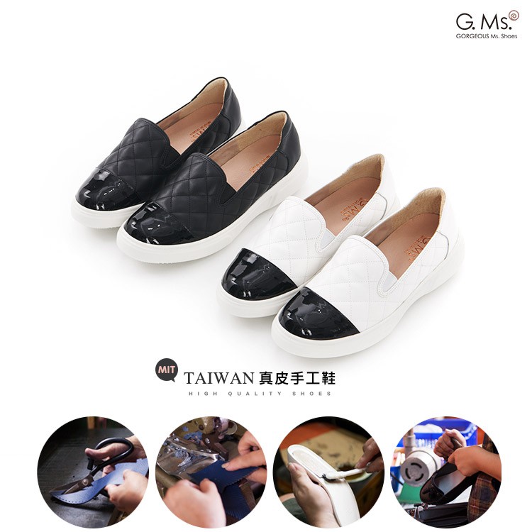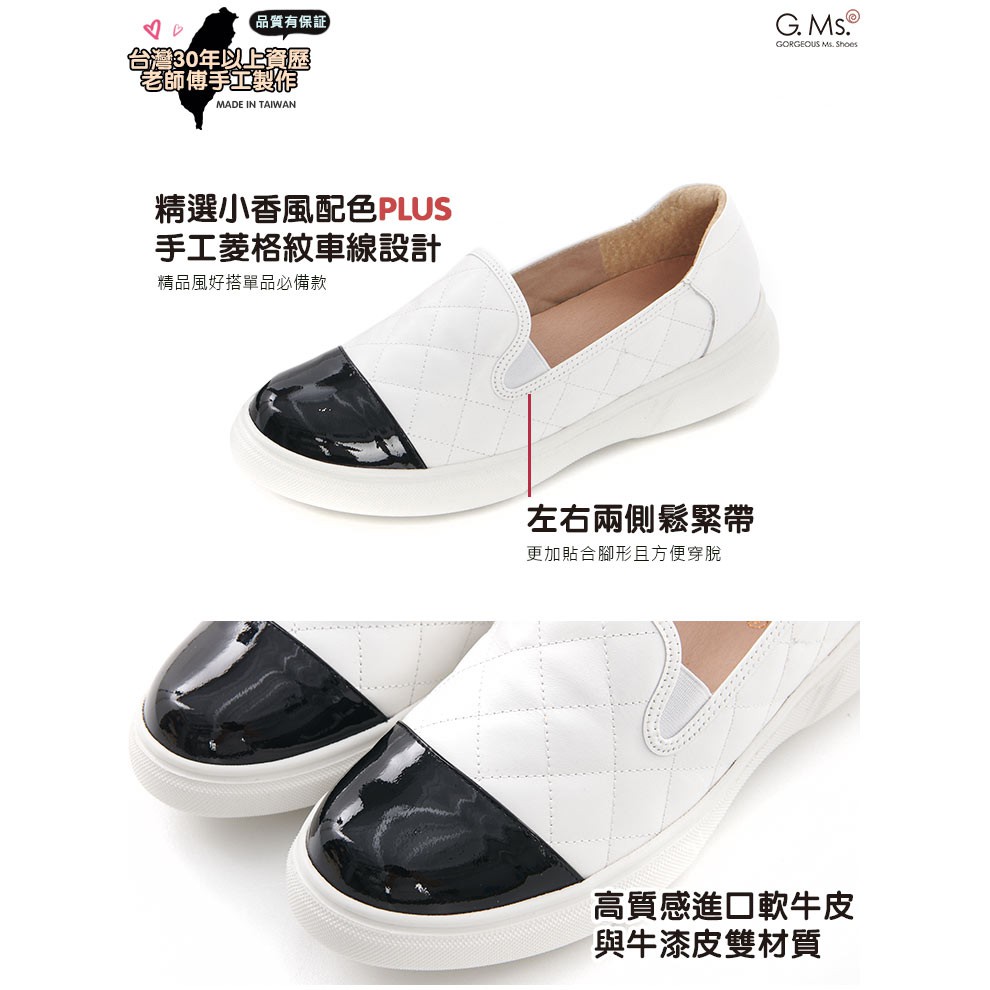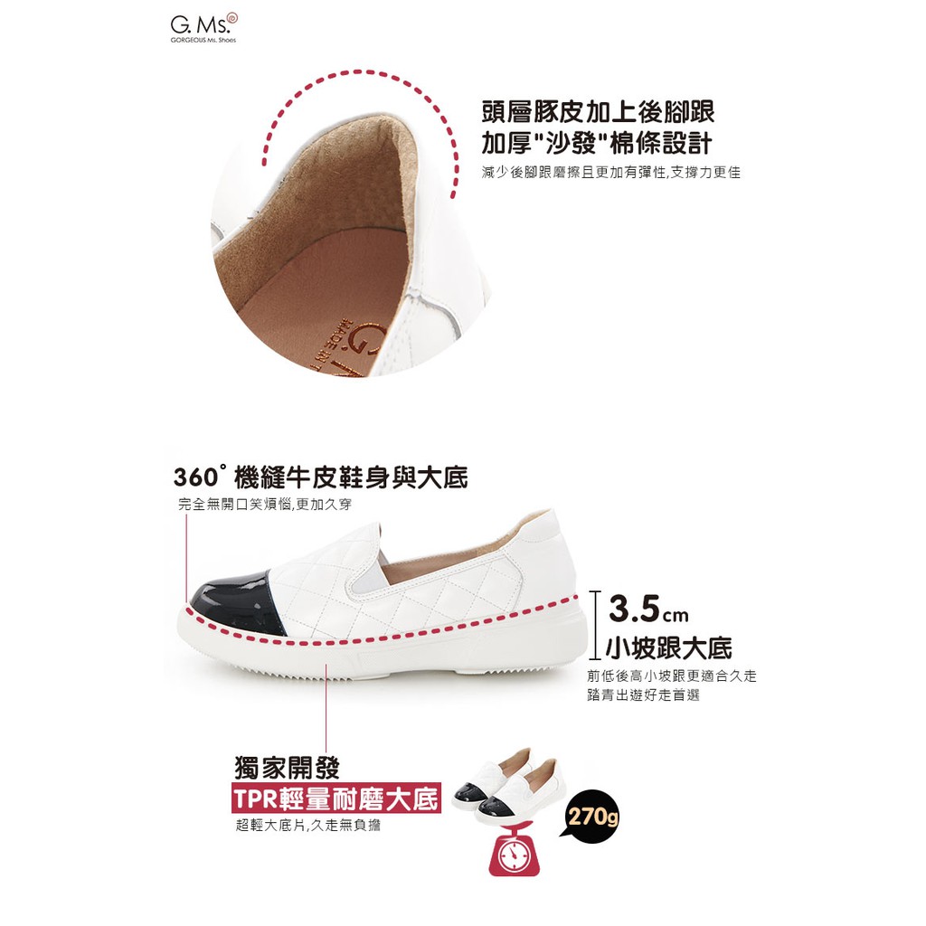 G.Ms. MIT系列-牛皮拼接菱格縫線輕量厚底休閒鞋-白色